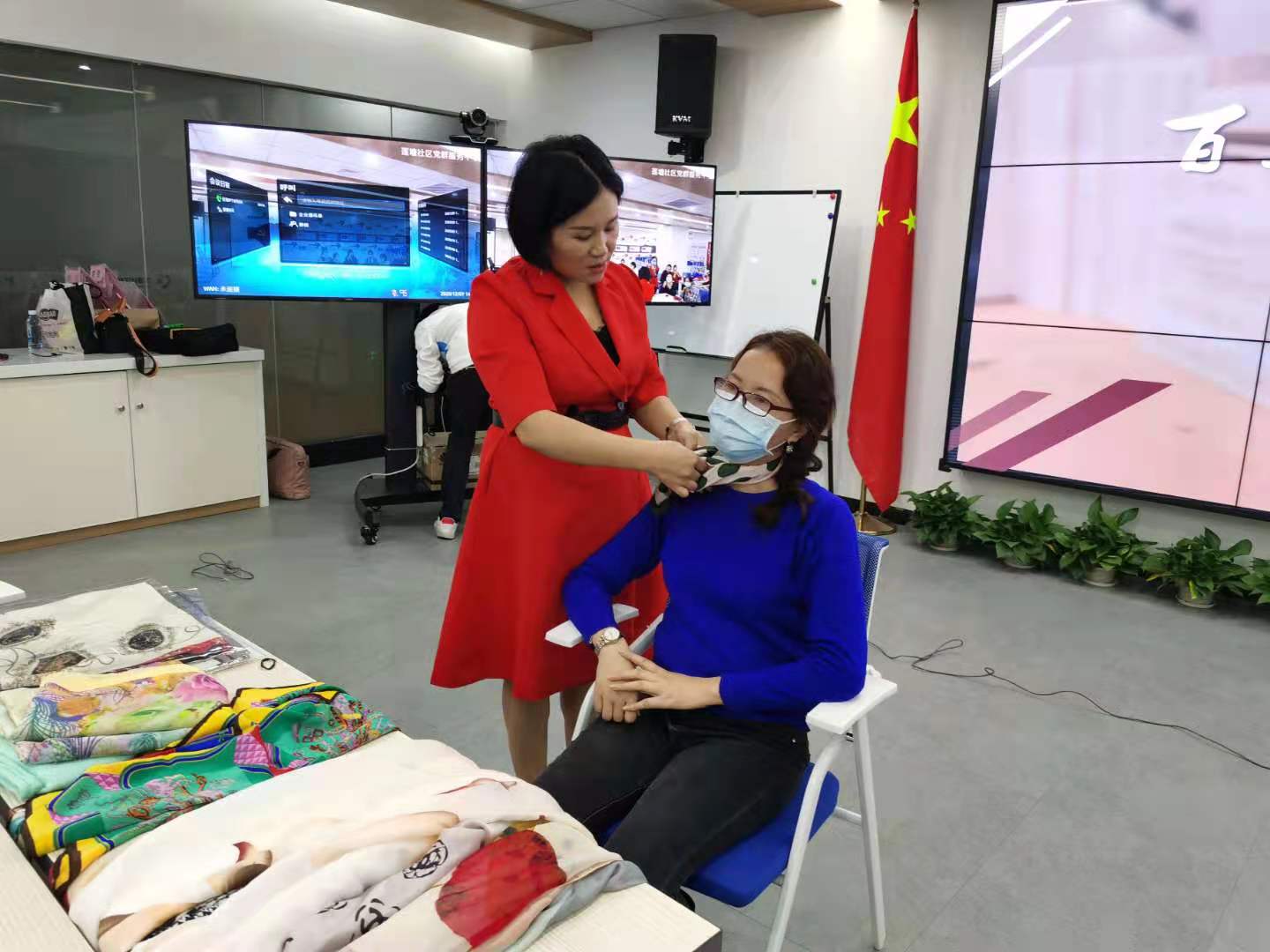 2020年12月10日,莲塘社区党群服务中心特邀专业服饰搭配讲师为社区女性同胞们开展了"百变丝巾绚丽冬季"服饰搭配讲座之丝巾搭配活动。
