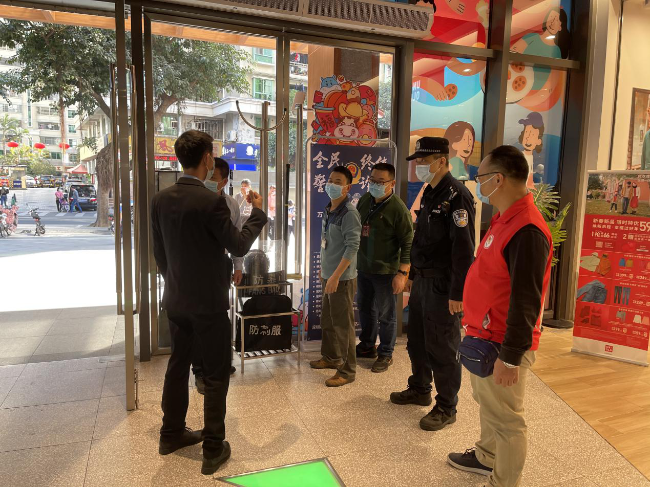 督导队来到盒马里岁宝商场,这里作为莲塘的商业中心地带,是人口主要聚集场所也是恐怖分子的重要目标,莲塘街道应急办督导组及莲塘派出所民警同商场管理人员了解商场的空间布局、逃生通道和反恐器材配备状况等,要求盒马里岁宝成立反恐怖工作领导小组,加强反恐培训与演练,建立常态检查指导制度,对进入商场的可疑人员、安全隐患、保安值班巡察状况等进行有效管理,防范于未然,提高对不法行为的防范。