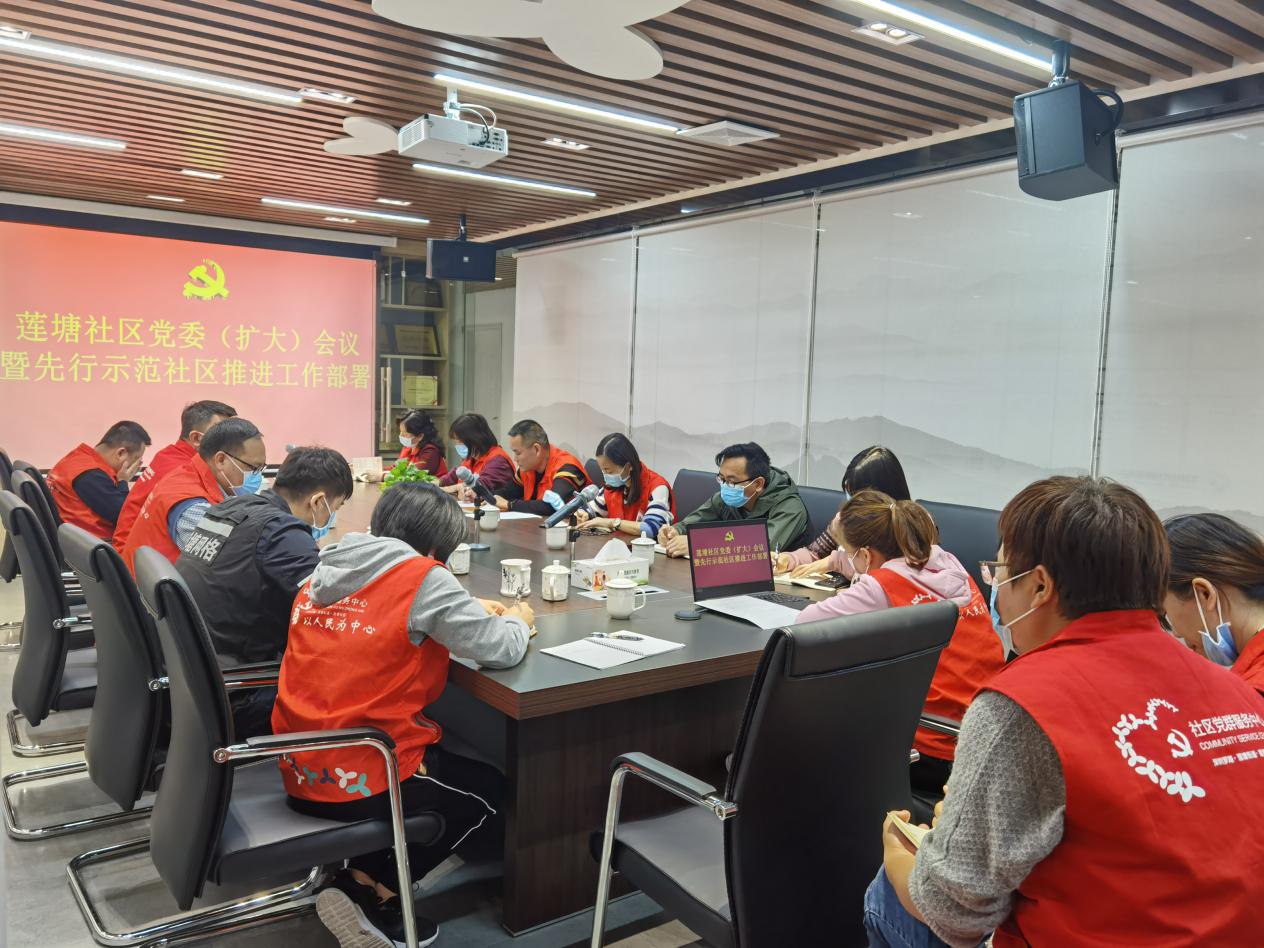 莲塘社区讯:2021年2月22日上午,莲塘社区党委召开党委(扩大)会议暨先行示范社区推进工作部署,莲塘社区党委书记王建平主持会议,对社区全体工作人员就先行示范社区推进工作进行部署。