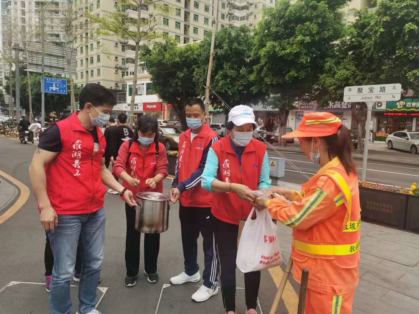 下午两点,温馨驻莲塘社区社工团队和社区义工们准时在服务中心集合,精心准备好美味汤圆和水果拼盘。大家兵分两路,一组负责招待今日轮休的社区清洁工人和安保人员,邀请大家聚在一起话话家常,聊聊工作,共度元宵佳节,现场一片欢乐;一组抬着保温桶,带好碗筷,将热腾腾的汤圆派送到社区的各个角落,给工作中的环卫工人、值岗保安、街边补鞋大叔、过往居民都呈上一碗爱心汤圆。颗颗滚烫的汤圆,饱含着基层社区党委对大家生活的美好祝福,尽管天空飘着毛毛细雨,大家也端着汤圆一边品尝一边开心的表示感谢,纷纷表示这碗特别的汤圆,吃得心里暖洋洋的。