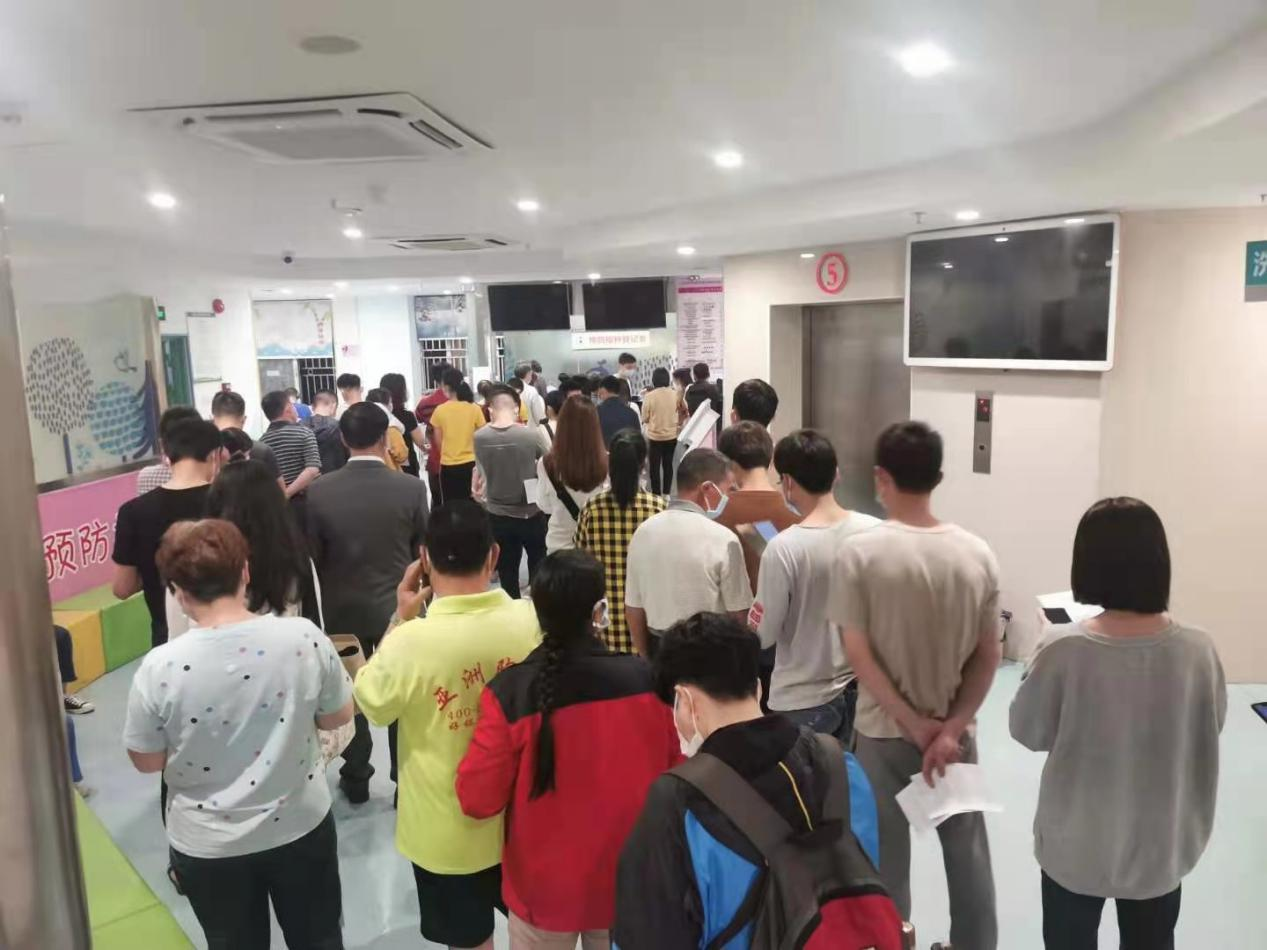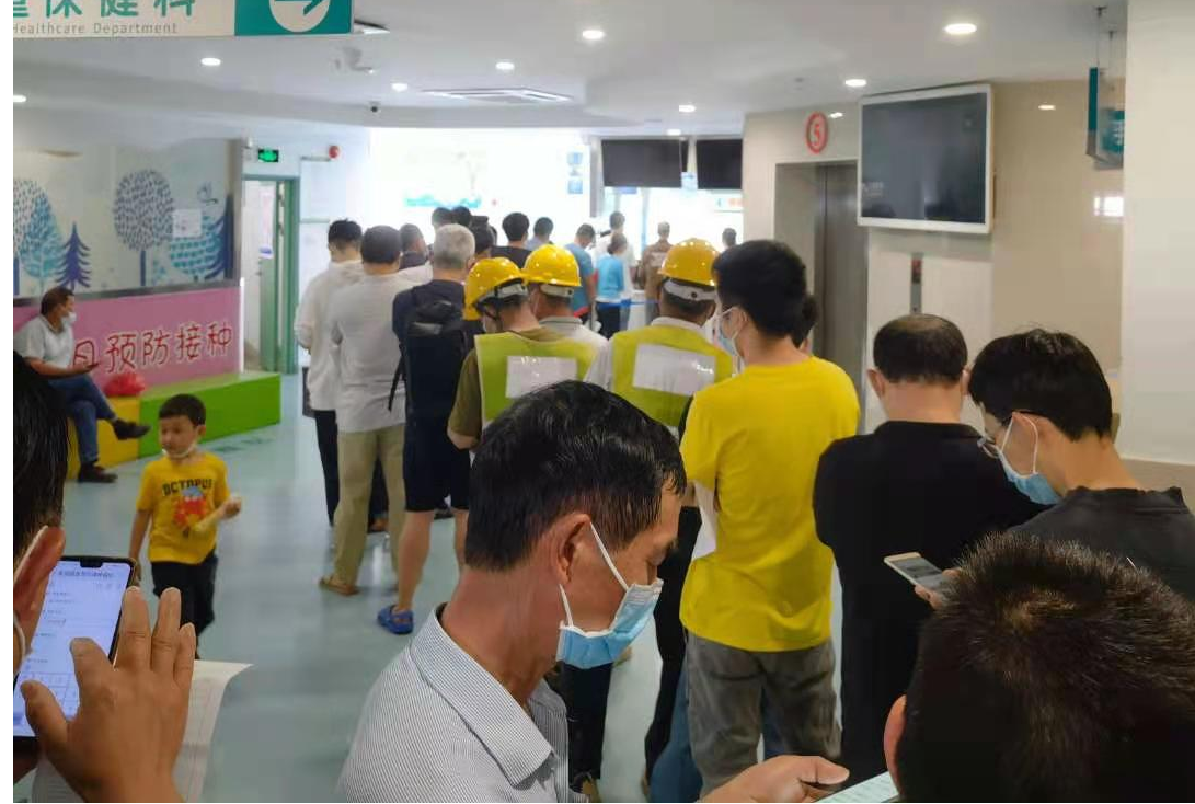 前来接种的居民在工作人员指导下用手机微信扫码建档、填写好健康情况说明,按顺序到指定位置排队接种,现场井然有序。当日,社区共有459位居民完成新冠疫苗接种。