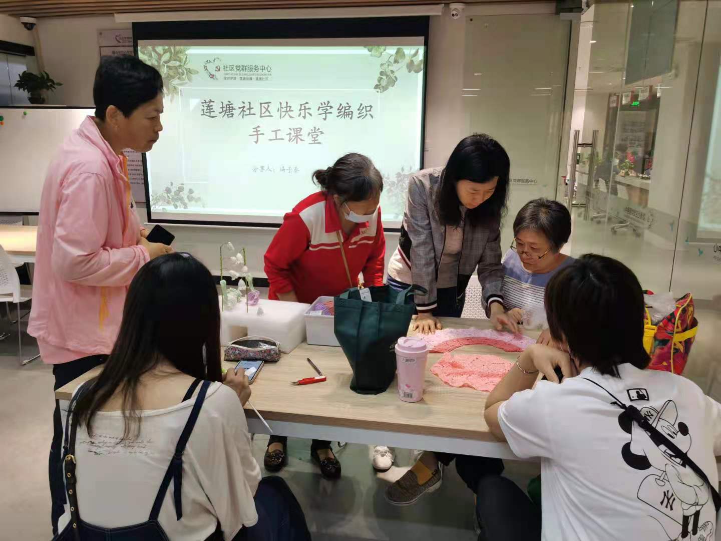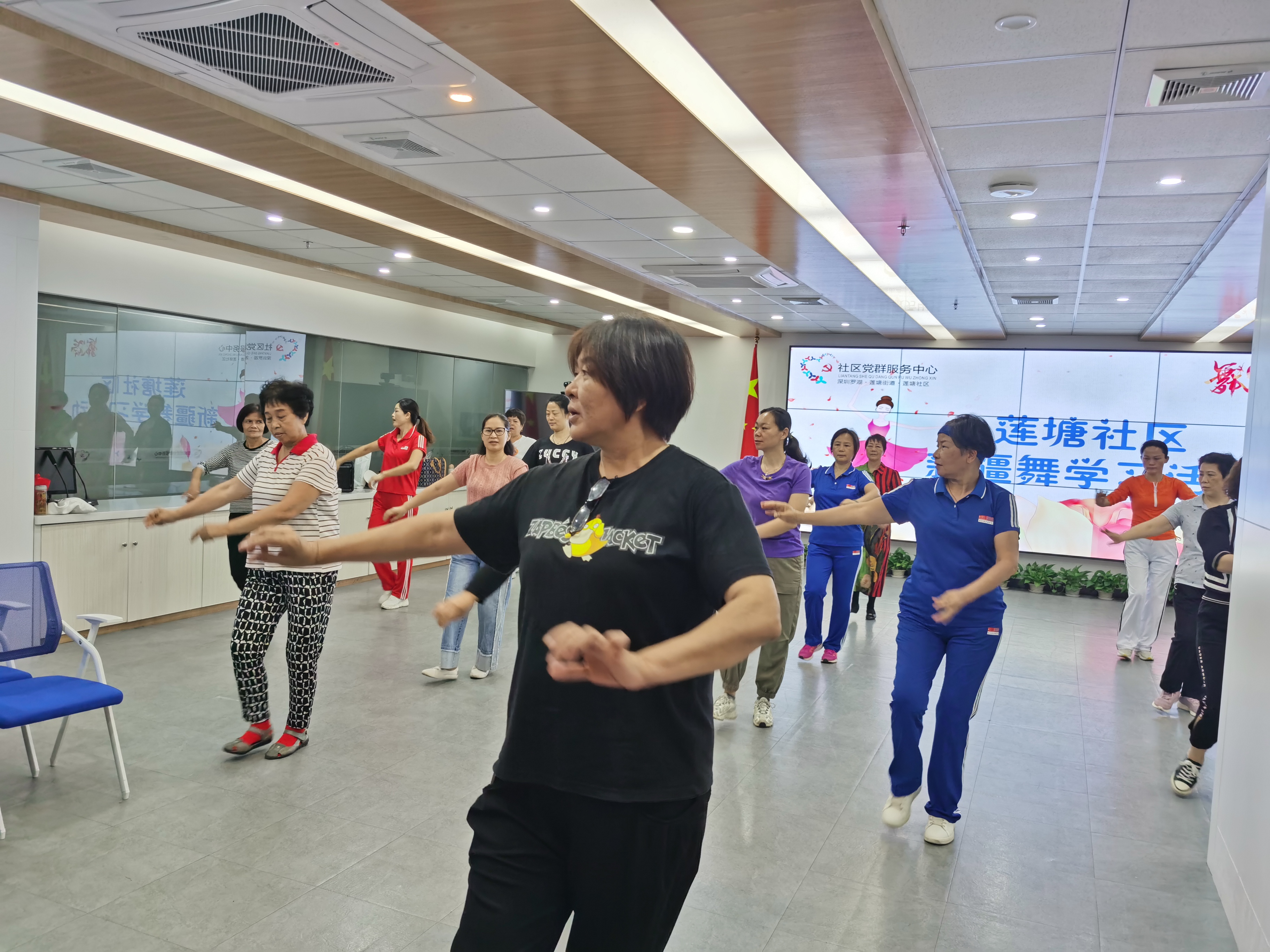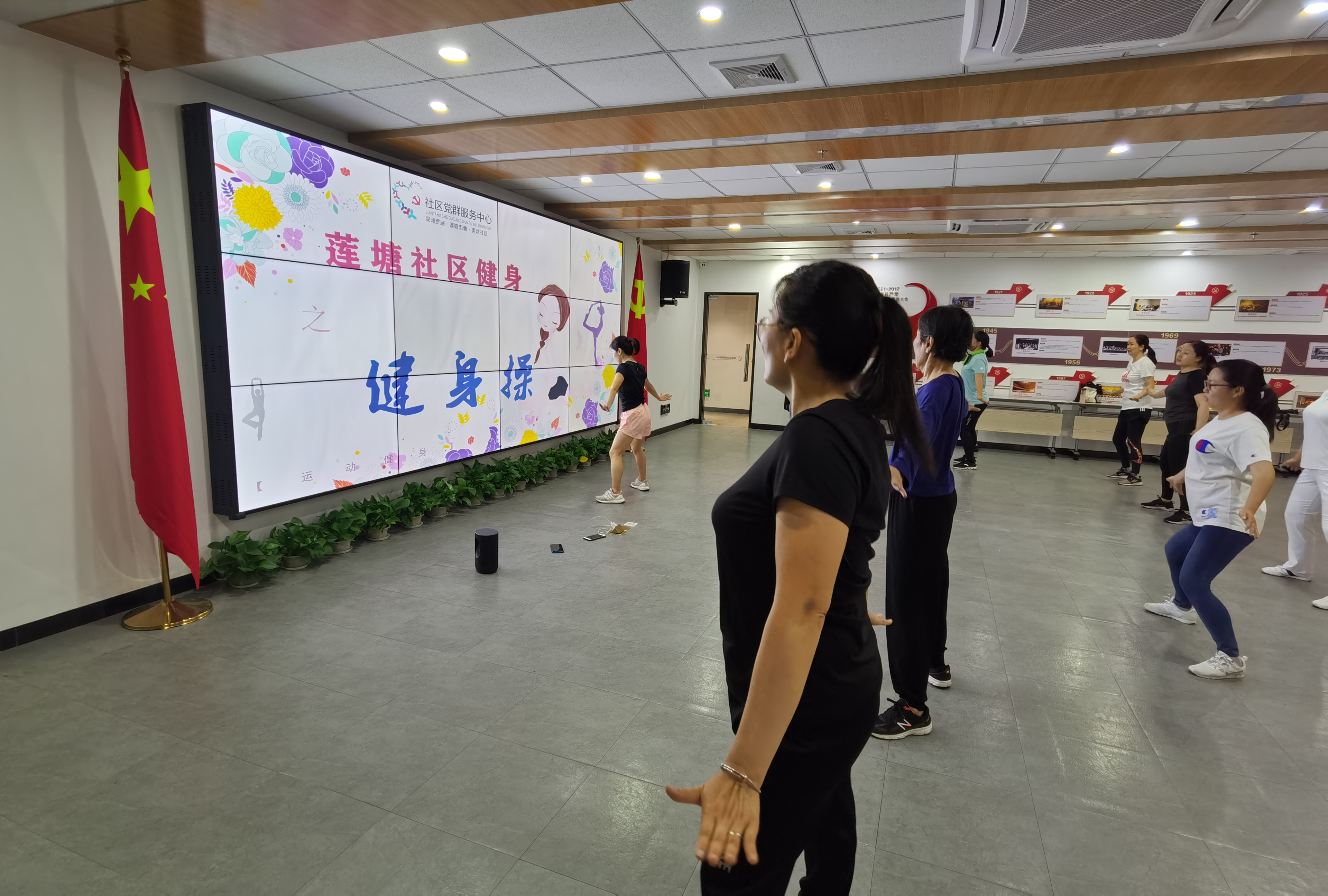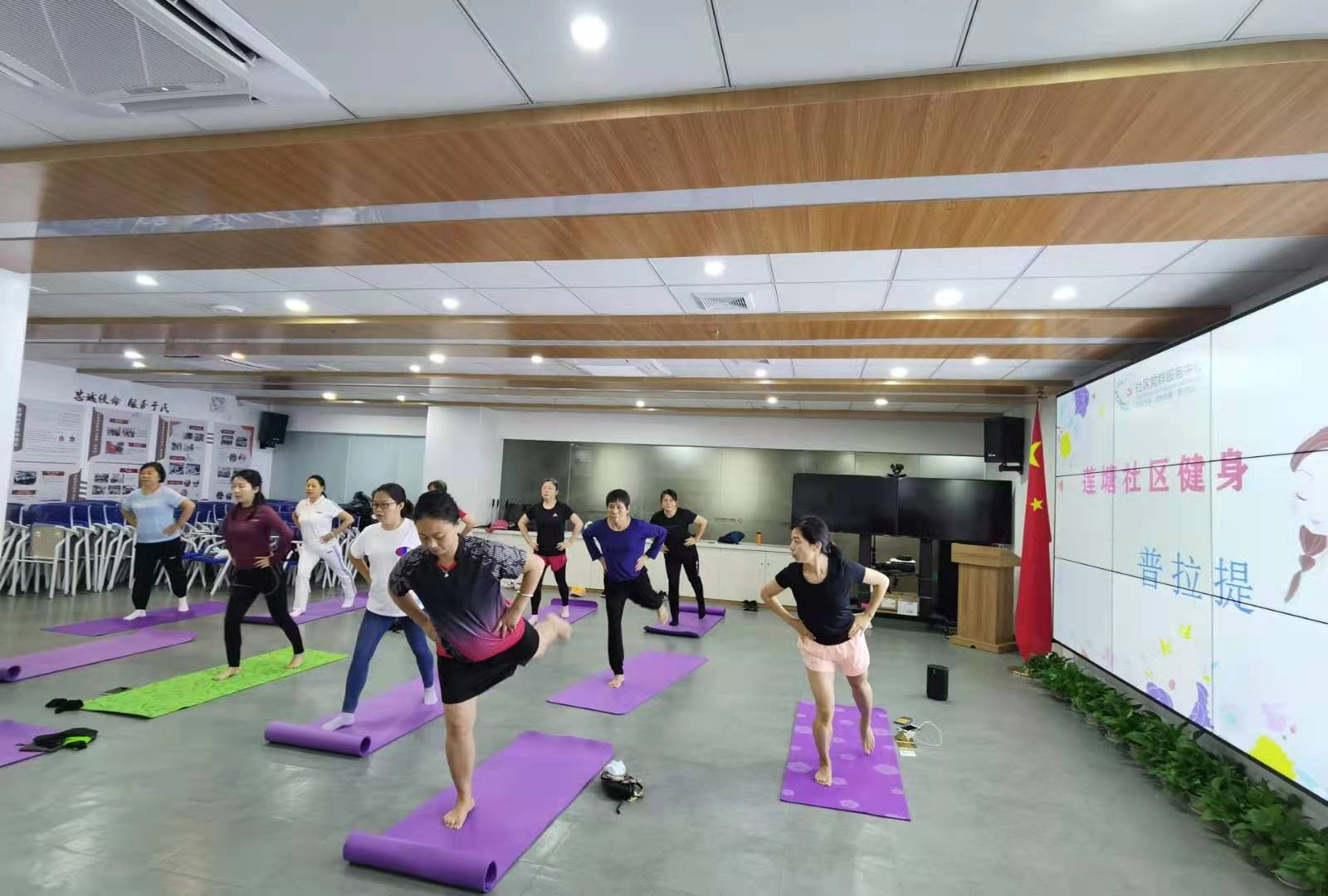 欢快的新疆舞曲中,居民们载歌载舞,歌唱咱们中华民族一家亲,舞出爱我中华魂;喜欢编织的心灵手巧的中青年妈妈们,随着手指上下翻飞,一顶顶美丽的草帽,像盛开在春天的花朵般绽放美丽;对身材有追求的美女们,在普拉提的一呼一吸中,收紧了线条,提升了气质;动动手呀动动脚,请做深呼吸,莲塘社区居民健身操走起……
