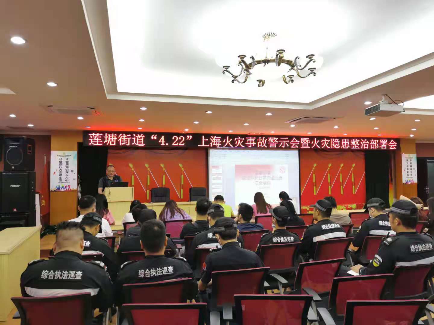 莲塘社区讯:为深刻吸取“4.22”上海火灾事故的教训,切实加强易燃易爆危化品场所消防安全管理,提高企业消防安全诚信度,确保辖区安全形势持续稳定,莲塘街道于2021年4月23日下午,在街道A会议室召开莲塘街道“4.22”上海火灾事故警示会暨火灾隐患整治部署会。