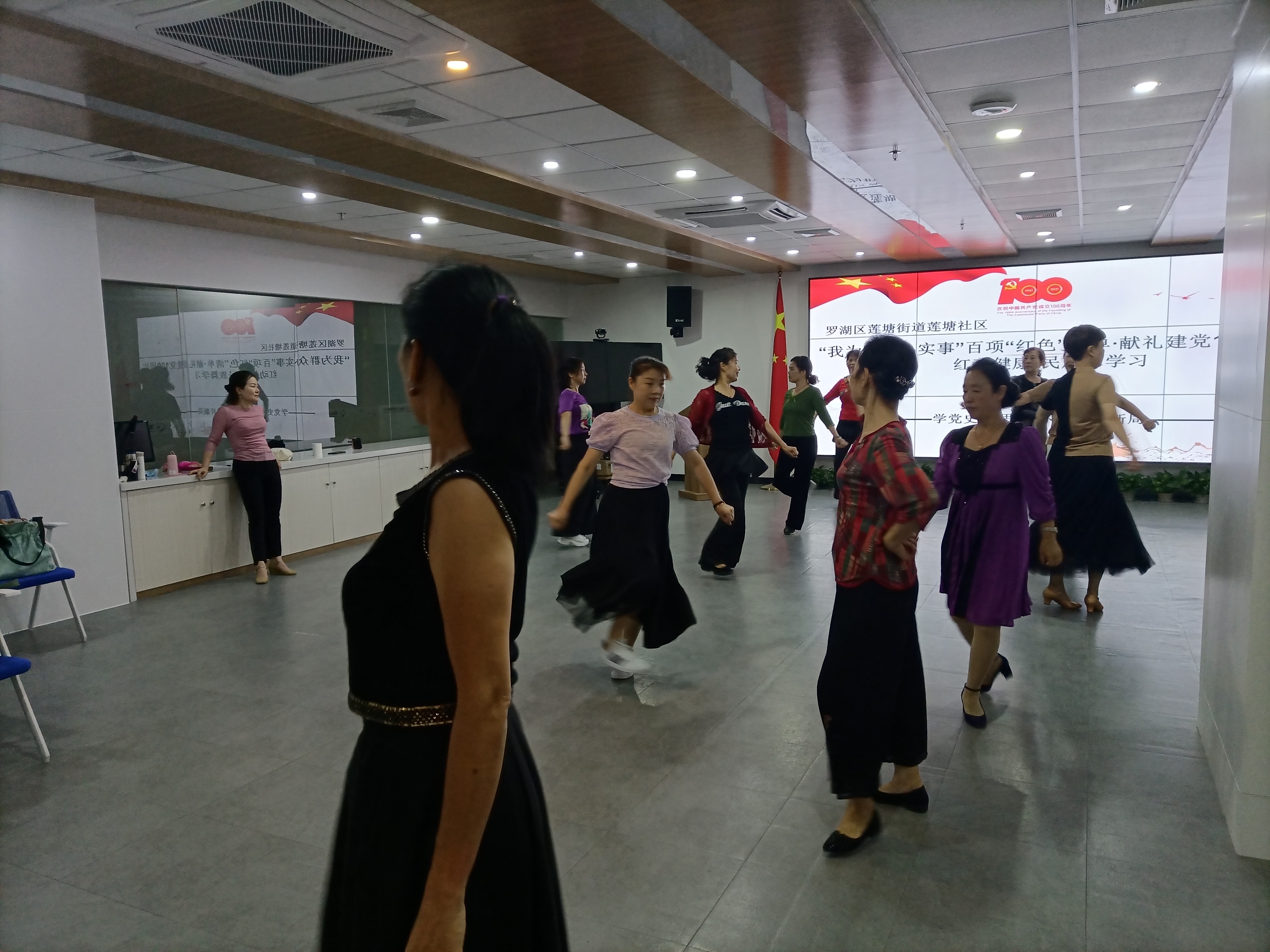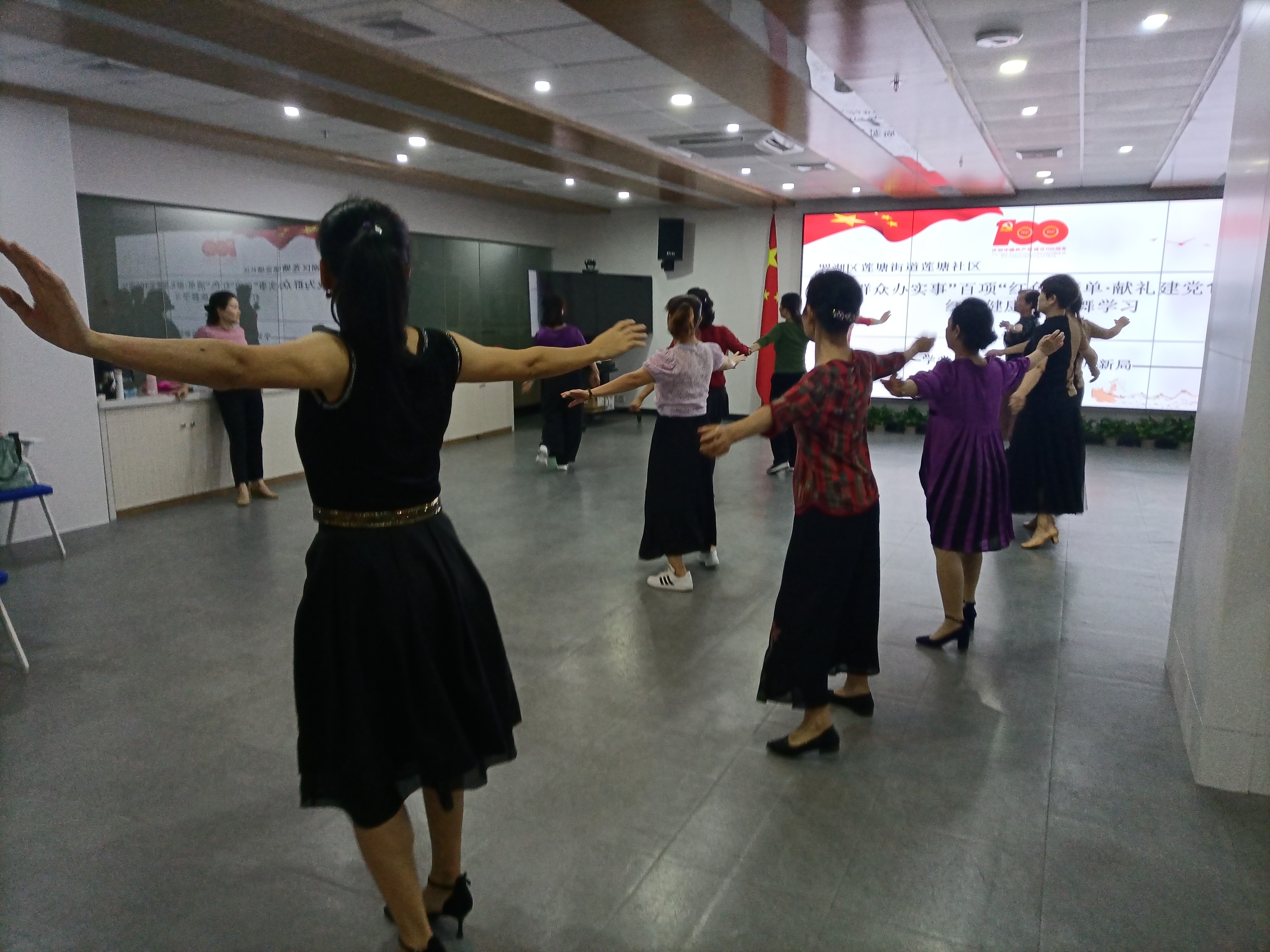 莲塘社区讯:在中国共产党百年华诞之际,为了激发居民群众热爱祖国的情操,莲塘社区党委结合社区实际,于2021年4月28日上午,在莲塘社区党群服务中心,组织辖区群众开展献礼建党100周年系列活动——“我为群众办实事”百项“红色”清单之“红动健康”民族舞学习活动。