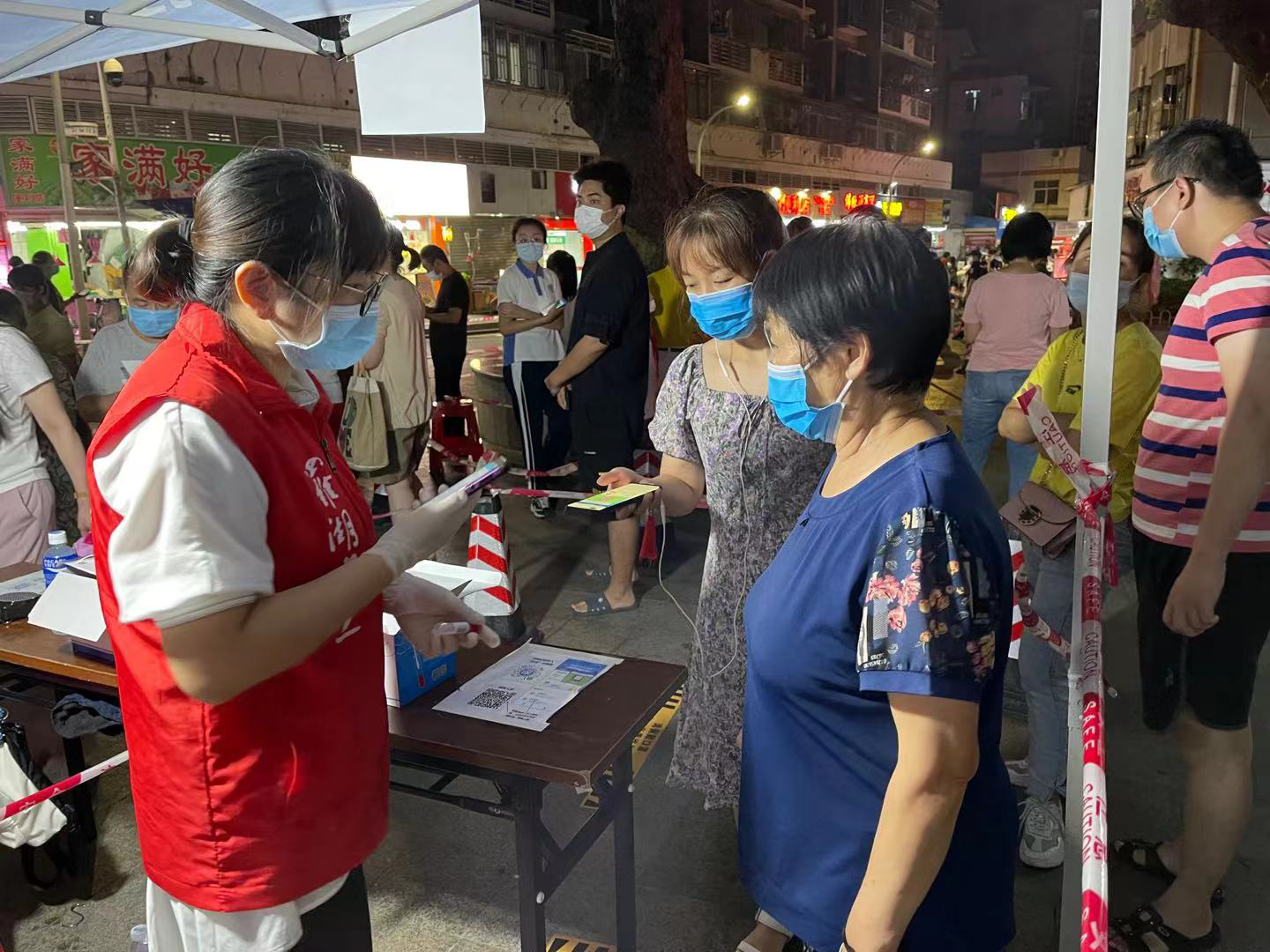 疫情发生后,党群工作部副主任郑跃芳一刻都没停下自己的脚步,她坚持带头示范,坚守在疫情防控第一线。她走遍社区的每个体温检测点及核酸检测点,随时随地都能看见她忙碌的身影。在她的带动下,党群工作部的其它女同志也集结出动。白天,她们在街上引导居民进行核酸检测,在社区核酸检测点积极参与协助信息采集、分流引导、秩序维护等工作。晚上,她们加班加点,有的跟网格员一起扫楼动员居民进行核酸检测,有的在办公室向未做核酸检测的居民挨个打电话通知测核酸,有的对近期重点地区来深人员进行全面排查管控、落实核酸检测情况。