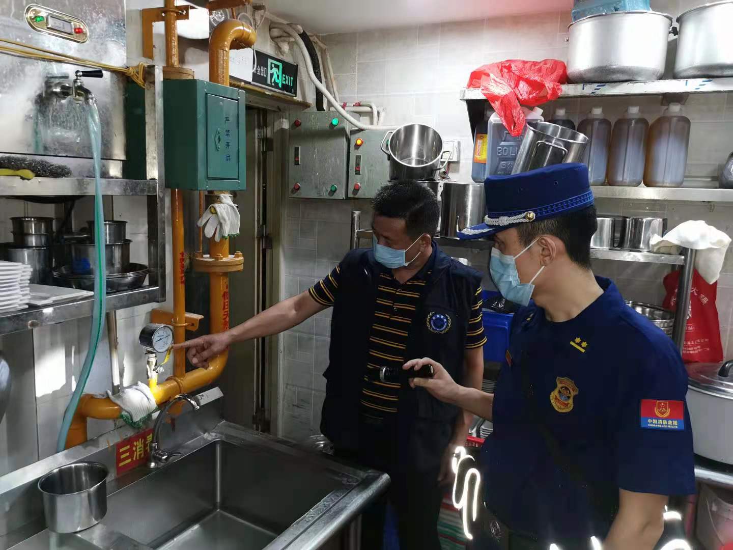 莲塘社区讯:为深刻吸取湖北省十堰市事故教训,加强餐饮行业燃气隐患排查治理,严厉打击燃气领域无证经营等违法违规行为,大力整治辖区内瓶装燃气和天然气站点的安全监督管理工作,2021年6月15日晚间,莲塘社区联合黄贝岭消防中队、莲塘街道安监科,在辖区内开展燃气安全隐患大排查行动。