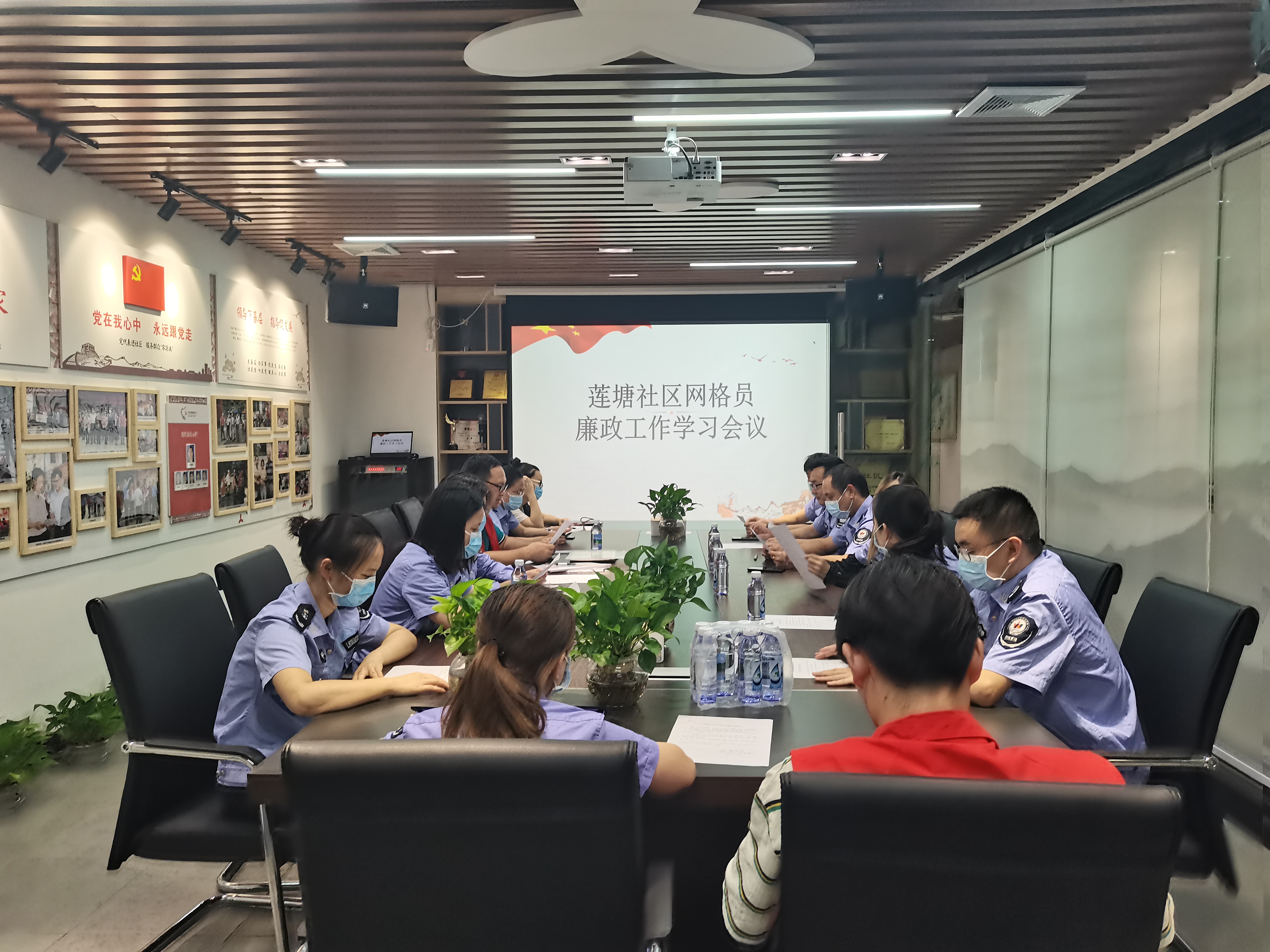 莲塘社区讯:为深入学习贯彻习近平总书记重要指示批示精神和党中央、省委、市委、区委的重大决策部署,莲塘社区结合开展党史学习教育,进一步加强党风廉政建设工作,提高党员干部廉洁自律意识,增强拒腐防变能力。2021年7月16日下午,莲塘社区召开网格员廉政工作学习会议。