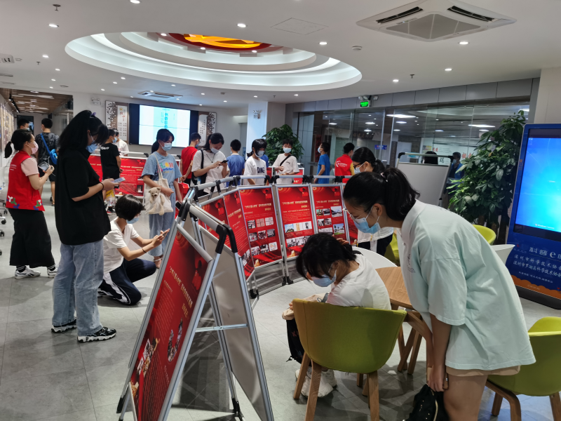 本次活动共包括两个环节,首先是百年党史知识巡展,20名青少年在工作人员的带领下观看了党史知识展板,本次巡展分为“百年回眸”、“百年掠影”、“百年变迁”三大板块,内容生动活泼、喜闻乐见、图文并茂,参加活动的青少年非常投入和认真地观看每一帧图片,有的同学还拍照留念。活动的第二个环节是分享感受,通过焦点讨论法,每位同学分享自己印象最深刻的一幅图画、一个事件并说出自己的感想和体会。有的同学感受最深的是知道了好好学习天天向上的出处和含义;有的同学对中国首次参加冬奥会印象深刻,结合本次的东京奥运会,得出中国人早已通过自己的努力,变成了一个体育强国,体育大国,中国人民顽强拼搏的精神激励着一代又一代人;还有的同学关注到了百年变迁版块中的“粤港澳大湾区”,这是我们深圳人的骄傲,在中国追梦的宏大叙事里,必将成为重要而闪亮的一章!