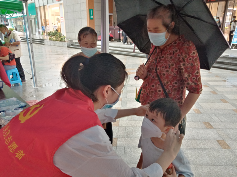 莲塘社区讯:为深入推进全国文明城市创建工作,进一步加强社区防疫宣传,扎实巩固党史学习教育成果,结合“我为群众办实事”实践活动,8月27日下午,莲塘社区党委联合罗湖区委(政府)办机关党委、深圳市广电公益基金会在盒马里岁宝广场开展了以“庆祝建党一百周年我为群众办实事”为主题的新时代文明实践志愿服务主题党日活动。