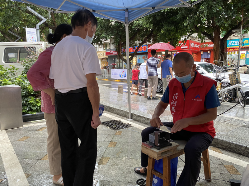 活动现场,深圳市广电公益基金会志愿团队为社区广大居民开设了免费测量血压、保健咨询、颈肩腰部护理、理发、磨刀、修鞋等服务项目。