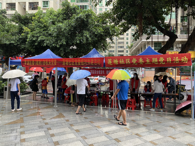 活动中,罗湖区委(政府)办机关党员和莲塘社区工作站党员充分发扬认真负责的工作作风,不惧风雨,深入社区广场,向过往群众发放防疫宣传单和《深圳市民文明手册》共约400份,并免费发放口罩约200包,她们走进群众中详细宣讲文明手册内容和讲解文明健康防疫知识,用积极负责的工作态度为社区防疫工作及创建全国文明城市贡献自己的力量。