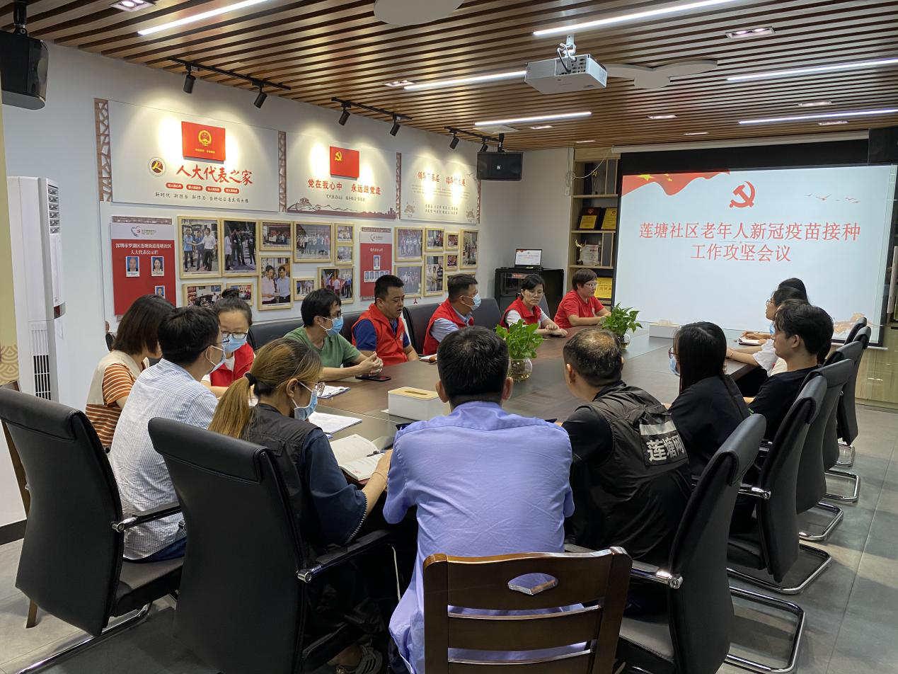 莲塘社区讯:为进一步落实省市的部署和要求,统筹做好应对和处置疫情防控工作,高度重视常态化疫情防控,加快推进新冠疫苗接种工作,筑牢外防输入、内防反弹严密防线,根据罗湖区疫情防控指挥部的要求,2021年9月1日下午,莲塘社区组织召开老年人新冠疫苗接种工作攻坚会议,街道机关攻坚组成员及社区工作站攻坚组有关人员参加会议。