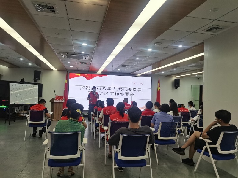 会议传达学习了习近平总书记关于做好县乡人大换届选举工作的重要指示精神和党中央决策部署,党委副书记罗奇就《深圳市罗湖区第八届人民代表大会代表选举办法》进行了宣讲和解读。重点对我辖区所属选区的划分、会场布置、工作人员分工以及选举工作中应注意的事项、疫情防控等相关问题作了工作部署和具体说明。