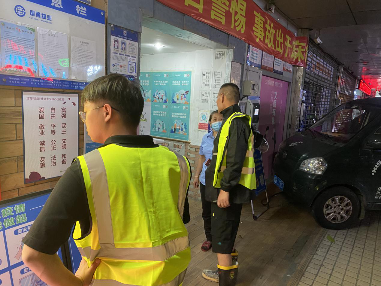 值班人员走访了辖区主要夜间经营场所,告知商家台风最新消息,检查经营单位台风应对措施和准备工作,特别叮嘱工作人员安全第一,做好自我保护。接着,他们巡查了各物业小区管理处,要求严格落实台风防御应急方案要求,以万全准备迎接台风“圆规”的到来,保障小区居民群众的安全。在景福花园片区旧改项目建筑施工工地,社区工作人员检查了工地围挡和建筑材料加固存放情况、工地周围排水设施运行状况、应急方案及值班人员在位情况等,与工地负责人做好台风前应对措施沟通。