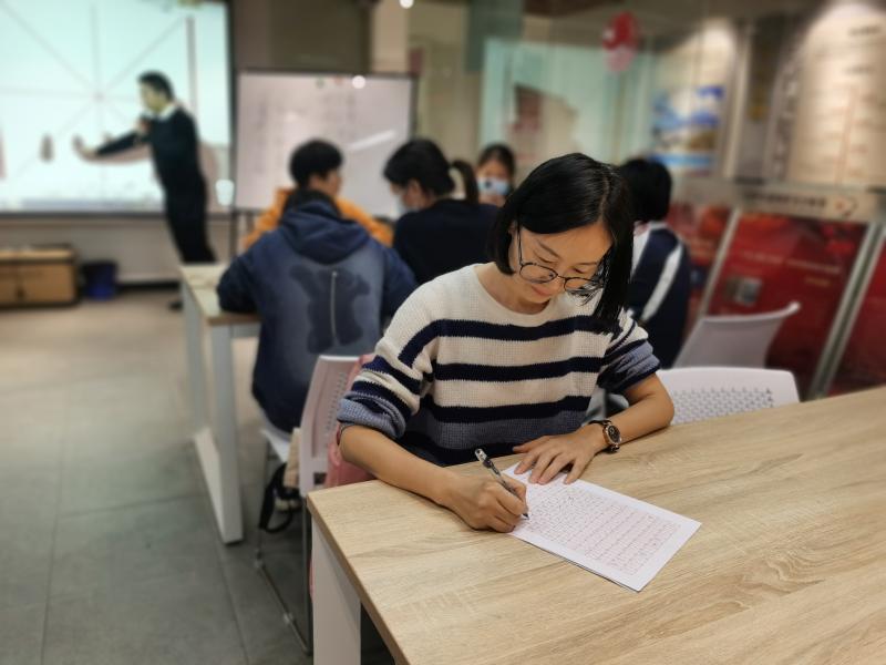 爱学习的人总是在专注中不觉时间已流逝,一个半小时的课程结束了,今天来的大部是妈妈,作为主要的家庭教育力量,妈妈们纷纷表示“通过参加今天的课程,收获满满,一是认识到写字的重要性,更感同身受了孩子写作业的心路历程,可以更加理解孩子,知道如何更好的陪伴和教育孩子。二是写字的时候精力集中,心手相应,感觉内心祥和而平静。感谢社区党委为居民提供这么高品质的艺术活动。”