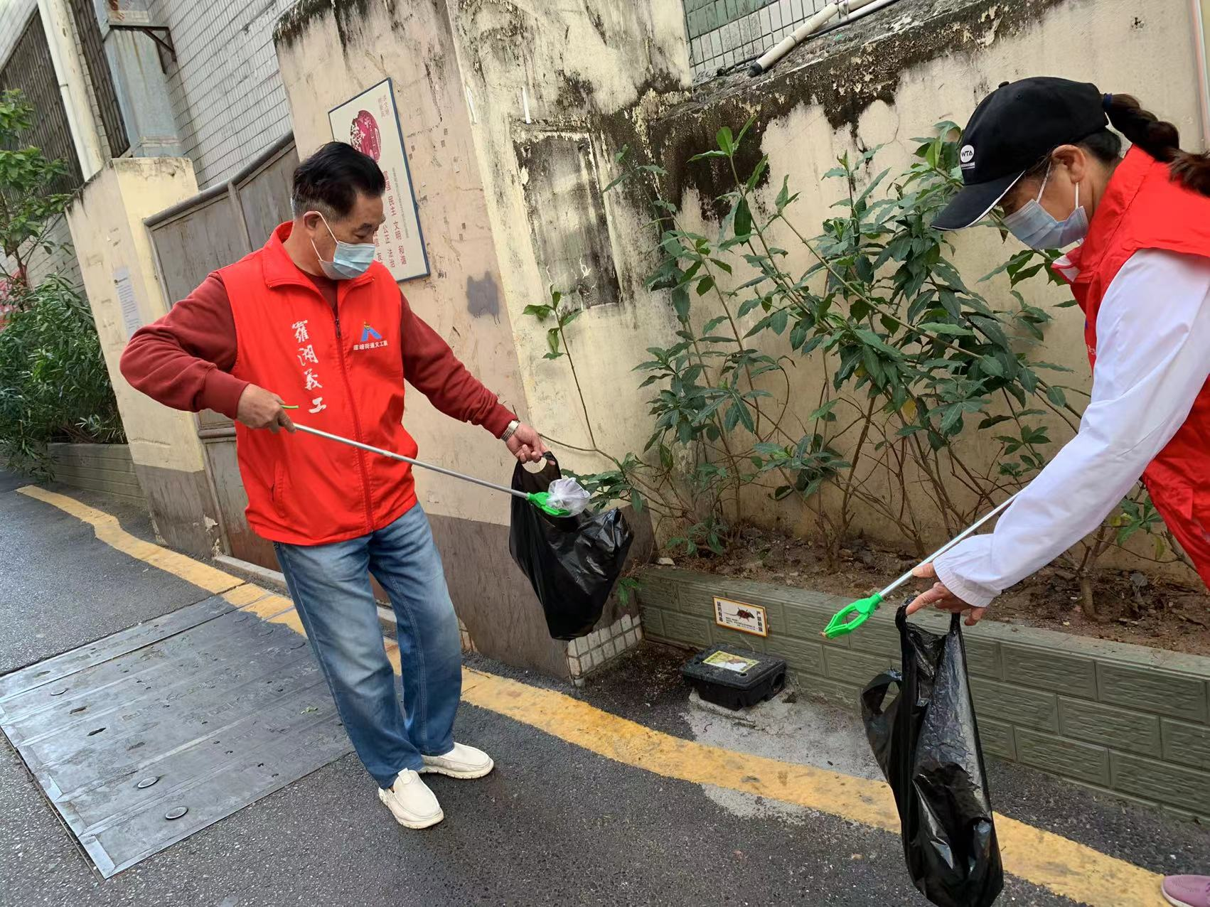 这支队伍中有72岁的老党员瞿汉民叔叔,75岁退休职工董阿姨,从海南来带孙女的陈卢俊老人,刚刚升职做奶奶的胡月红,莲塘社区居民张凤霞、邹壬娣、潘观秀、李美媚,还有全职妈妈代先艳……他们每天上午九点半到十一点,下午三点至四点半,手持清洁工具,行走在莲塘的商业区、居民楼和各村落,俯身一个矿泉水瓶、烟头,扬手垃圾分类入篓,他们风雨无阻,他们内心坚定。下午四点半,满载而归的志愿者回到了社区党群服务中心交还清洁工具,望着他们因为劳动而面色红润的脸,握着有些粗粝却热乎乎的手,一股暖流温暖着我的心。