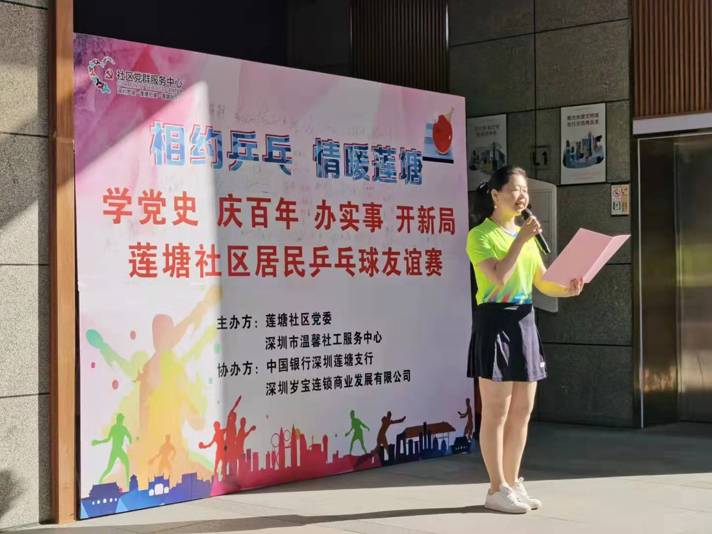本次比赛得到了中国银行莲塘支行的大力支持,何雁冰行长说:“作为莲塘党群服务中心的共建单位,能够协助党委为社区居民组织一场以球会友的盛会,共同创建美丽和谐的社区是中国银行的心愿”。莲塘社区党委书记王建平说“2022年即将到来,新时代、新征程,体育的价值和内涵更丰富多元,也被赋予新的使命和担当。莲塘社区党群服务中心的宗旨是“以人民为中心,全心全意为人民服务”,我们将不断探索,继续推出居民朋友们喜爱的体育和文化活动,走深走实为群众服务的最后一公里!”