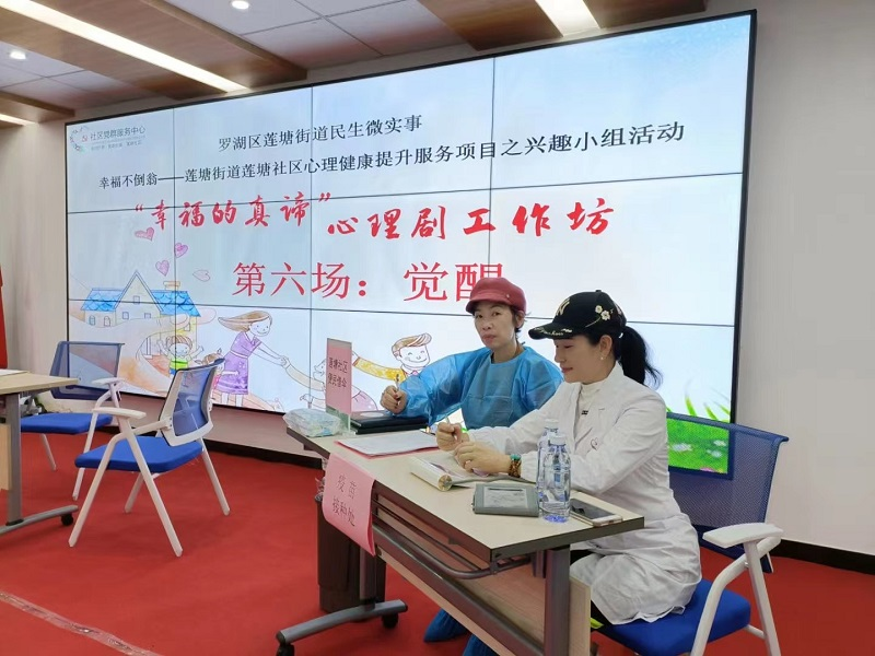 12月10日下午,由莲塘社区、盐田区同心社工服务社承办的民生微实事“幸福不倒翁--心理健康提升服务”项目,心理剧工作坊第六场在社区党群服务中心如期开演并圆满结束,社区的居民们积极参与此次活动。本次公演主题为"觉醒",由我们的公益讲师吴老师担当主讲。