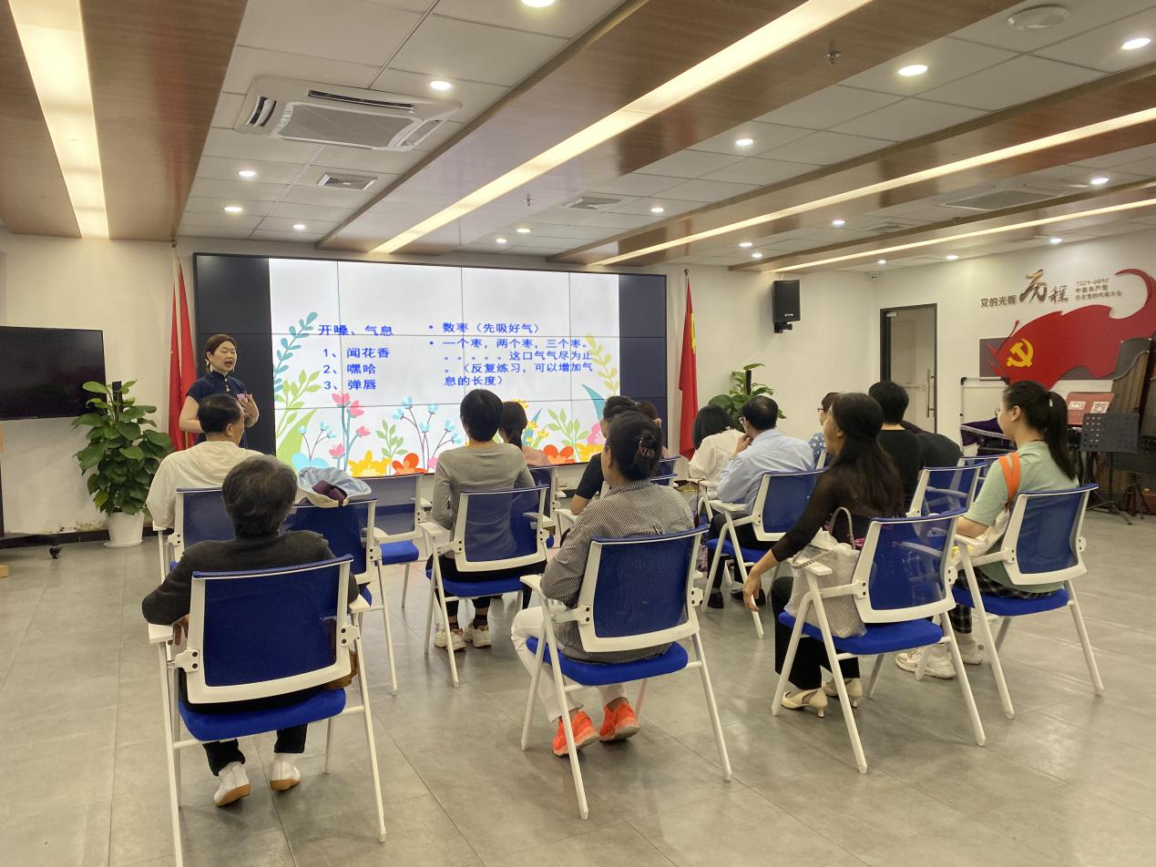 莲塘社区:为大力弘扬中华民族尊老敬老的优良传统美德,营造老有所学、老有所乐的良好氛围,提升老年人精神文化生活,莲塘社区每周一为社区长者居民开展“朗诵情 夕阳红”诗歌朗诵兴趣小组。在莲塘社区的莲馨大讲堂,每周一上午都准时传来长者吟诵的声音,“怒发冲冠,凭栏处、潇潇雨歇”“我说你是人间的四月天...”