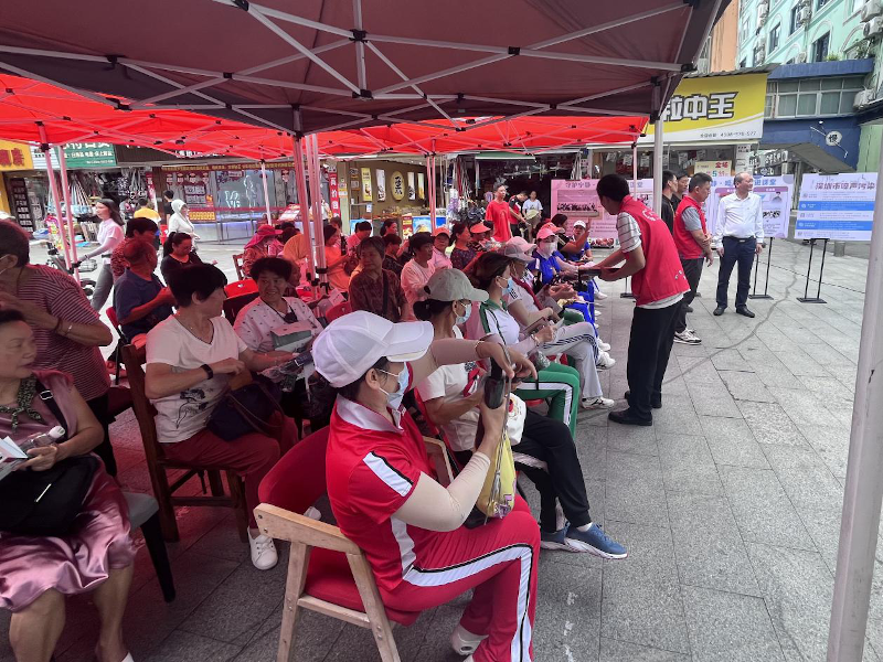 在宣传过程中,身穿红色志愿服务马甲的党员志愿者向居民发放宣传材料,鼓励居民培养减少噪声产生的良好习惯。现场气氛热烈,活动受到了辖区居民的广泛欢迎和支持。“这个活动好哇,我家就住在小广场附近,我们都希望有一个安静的环境,应该多办点这样的活动!”现场群众纷纷点赞,并表示对噪声污染防治有了更深的了解。