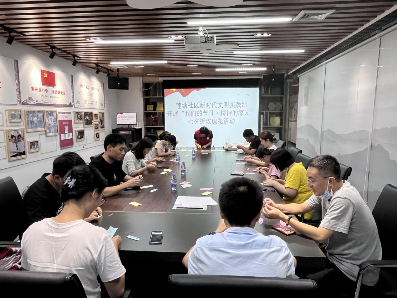 莲塘社区讯:迢迢牵牛星,皎皎河汉女。为进一步传承和弘扬中华七夕文化,营造文明健康的辖区环境及积极向上的人文氛围,8月22日下午,莲塘社区新时代文明实践站在党员会客厅开展了2023年“我们的节日·精神的家园”手工折纸玫瑰七夕节主题活动。