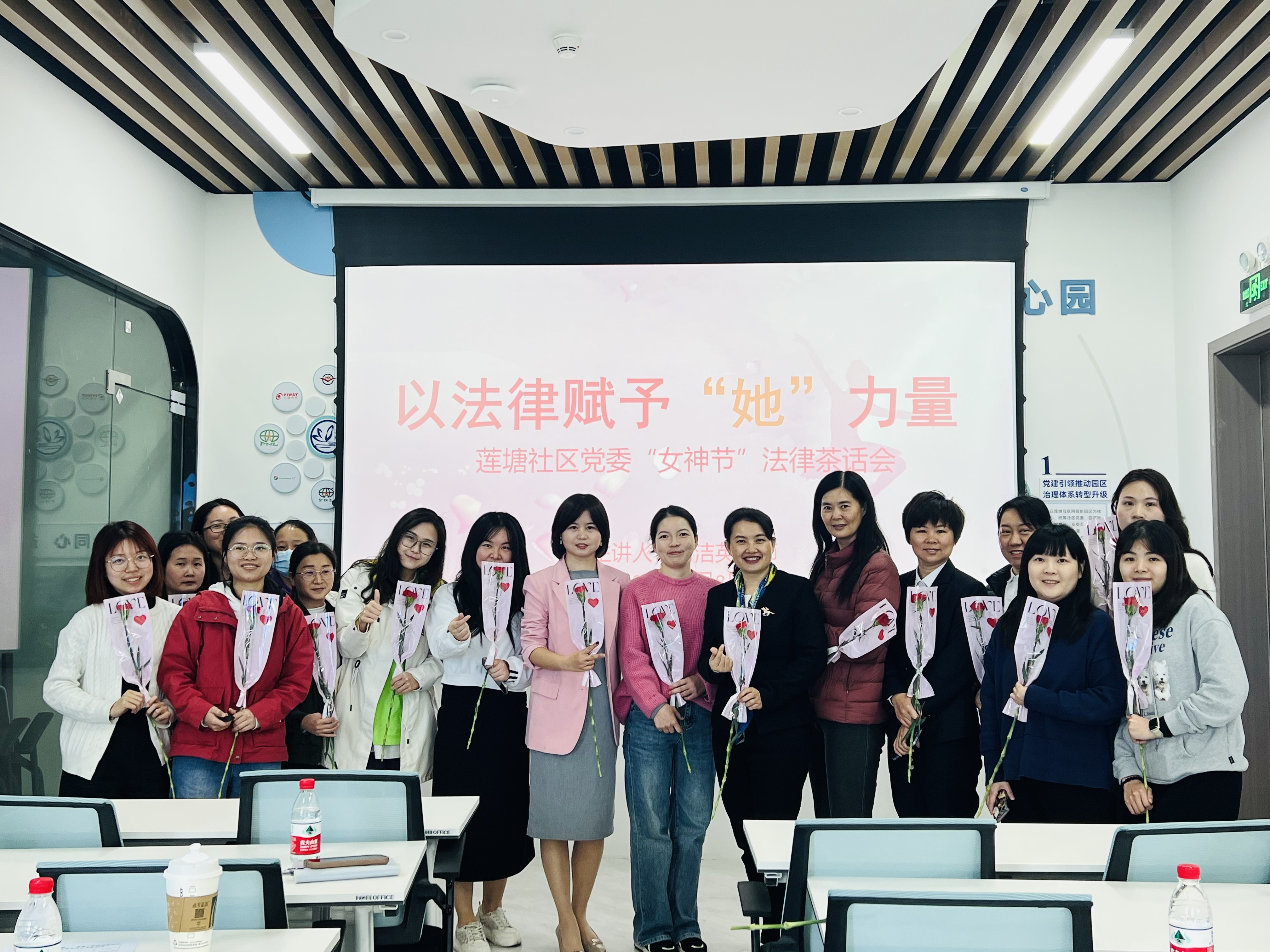 为进一步增强辖区妇女群众在日常生活中的维权意识,营造尊重妇女、维护妇女权益的良好氛围,让法律成为维护妇女权益的有力武器,3月8日上午,莲塘社区邀请到封洁英律师开展“以法律赋‘她’力量”3·8妇女节主题普法宣传活动。活动中,封律师围绕《妇女权益保障法》进行宣讲,用通俗易懂的语言,结合身边案例,让大家了解到女性在婚姻、家庭生活中,可能遇到有关家庭暴力、子女抚养、老人赡养等涉及妇女权益的问题,引导女性树立正确的维权观念,更加清晰了解自己的权益,让每一位女性勇敢追求自己的梦想,以法律为武器,披荆斩棘,做自己人生路上的“大女主”!
