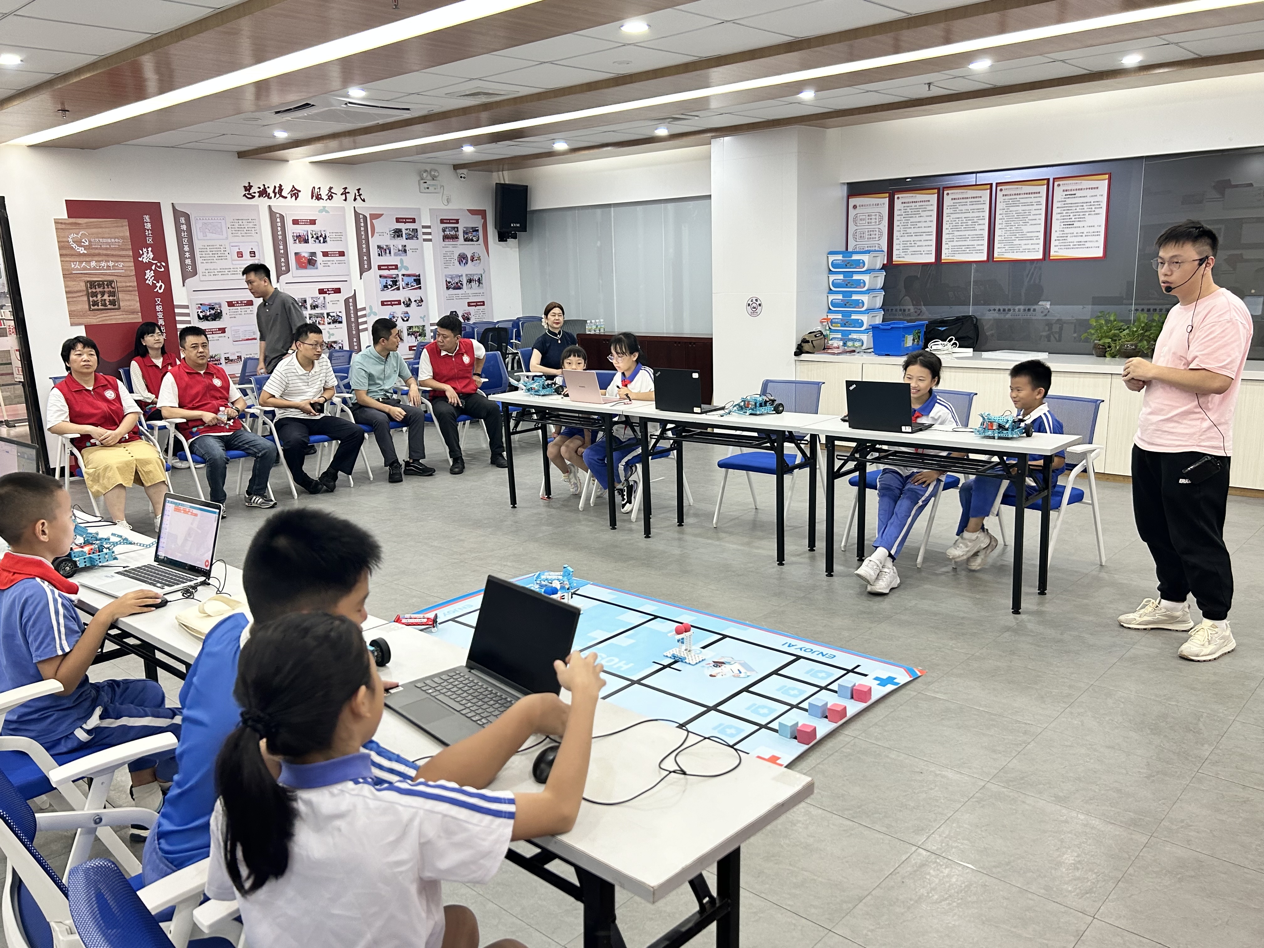 随后,与会领导共同为“莲享坊”和“青少年科创基地”揭牌。揭牌仪式结束后,与会人员还参观了“莲享坊”阵地,并现场观摩了倍爱思科技的老师带来的鲸鱼机器人公开课展示。