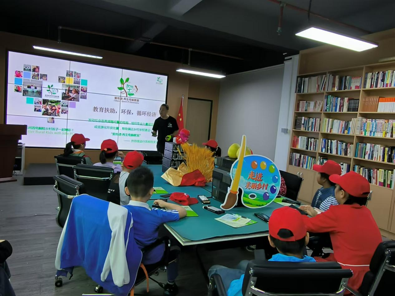 负责接待和讲解的杨老师早早等在门口欢迎大家的到来。杨老师先给大家播放了企业关于环保公益的宣传片,让小记者们对电子产品及其背后的环保问题有了初步的认识。紧接着,活动的重头戏来了。小记者们在杨老师的精彩介绍下进一步深入了解再生电脑项目,杨老师详细介绍了公益组织如何收集人们淘汰的废旧电脑,再通过专业的技术和流程变废为宝,重新组装成功能完好地电脑,捐赠给有需要乡村学校电子课堂。他强调,这一项目不仅有助于减少电子垃圾对环境的污染,还能让更多人享受到科技带来的便利,让“收垃圾”在爱与科技的加持下变成很高级的社会公益事业,让我们生活更美好。小记者们听得津津有味,纷纷提出自己的疑问和见解,现场气氛热烈而活跃。