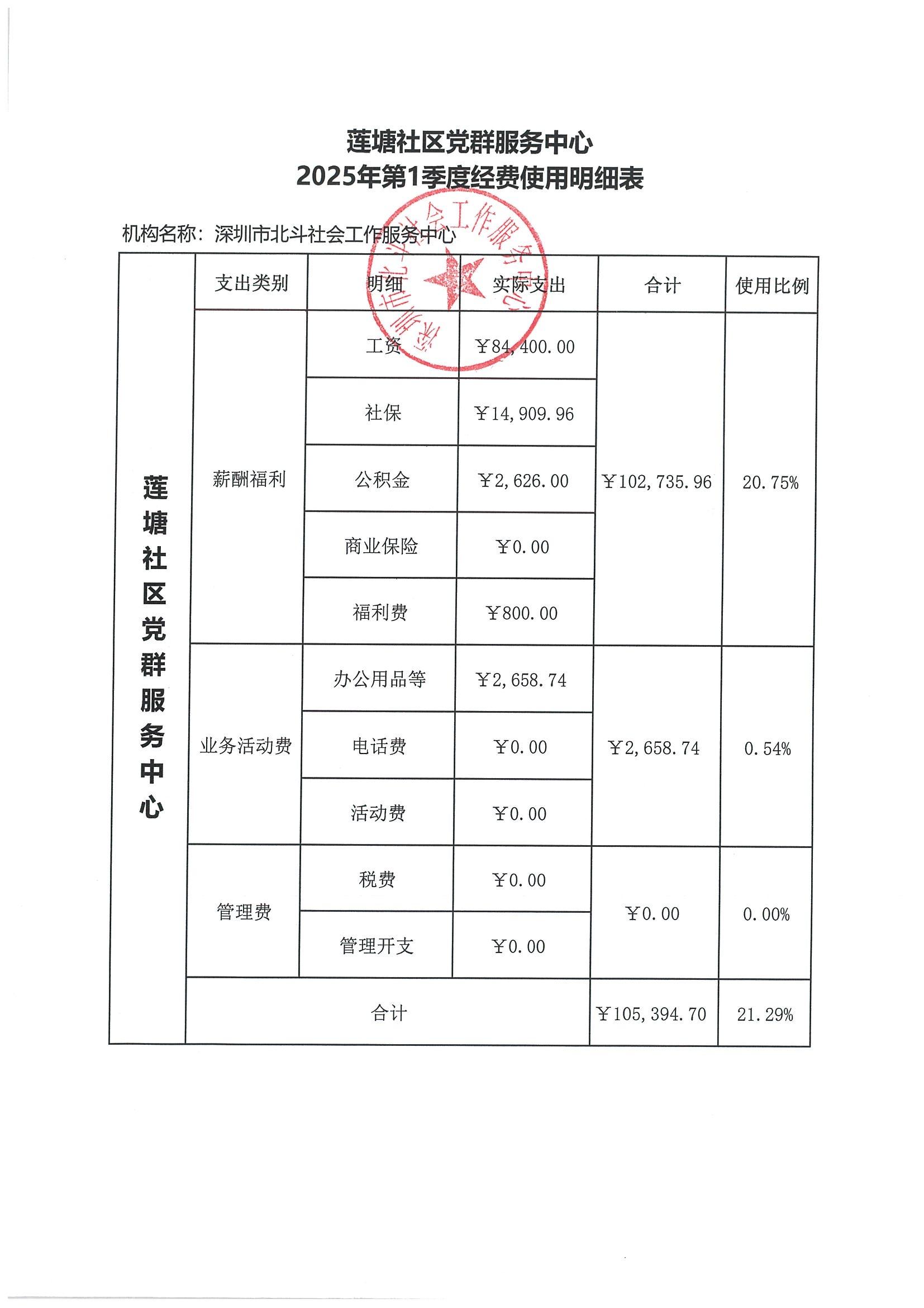 莲塘社区党群服务中心费用公示(2025年第1季度)