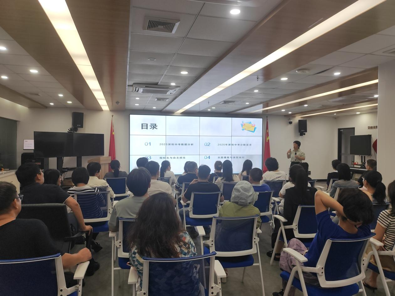 莲塘社区讯:随着2025年深圳中考的脚步日益临近,志愿填报成为考生和家长们关注的焦点。为帮助辖区初三学生及家长科学规划中考升学路径,5月15日晚上,在莲塘社区党委的指导下,莲塘社区党群服务中心的社工开展了“中考升学规划”公益讲座。本次讲座内容丰富,聚焦政策解读、志愿填报、择校策略等内容,吸引了30余名家长参与。