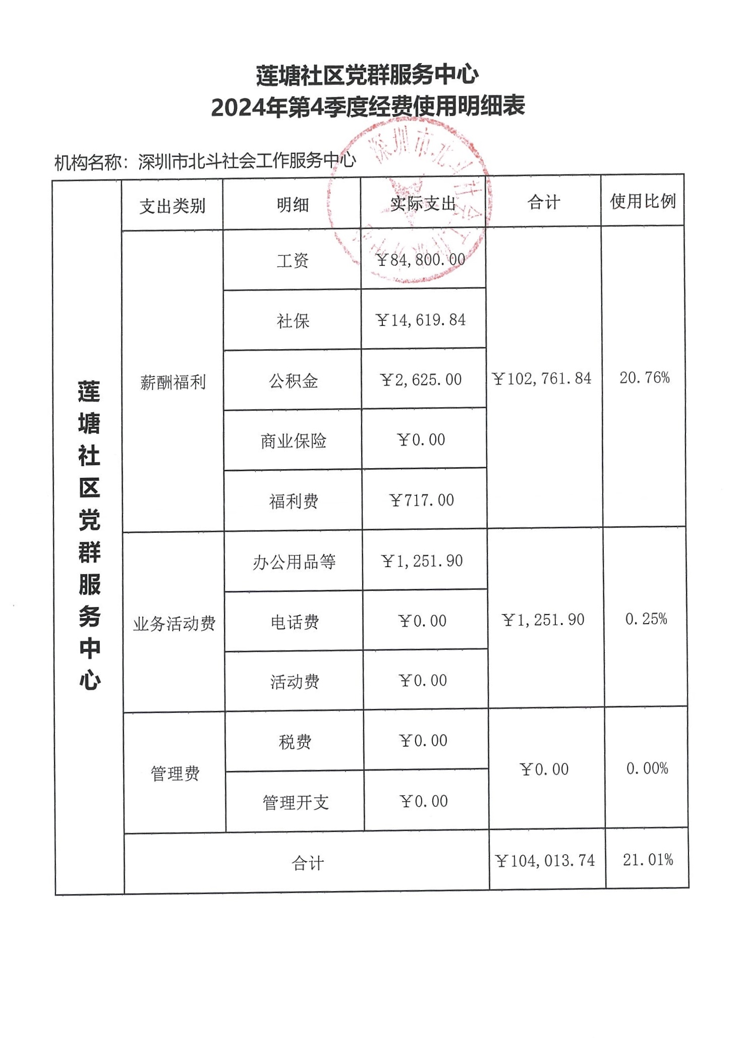 莲塘社区党群服务中心费用公示(2024年第4季度)