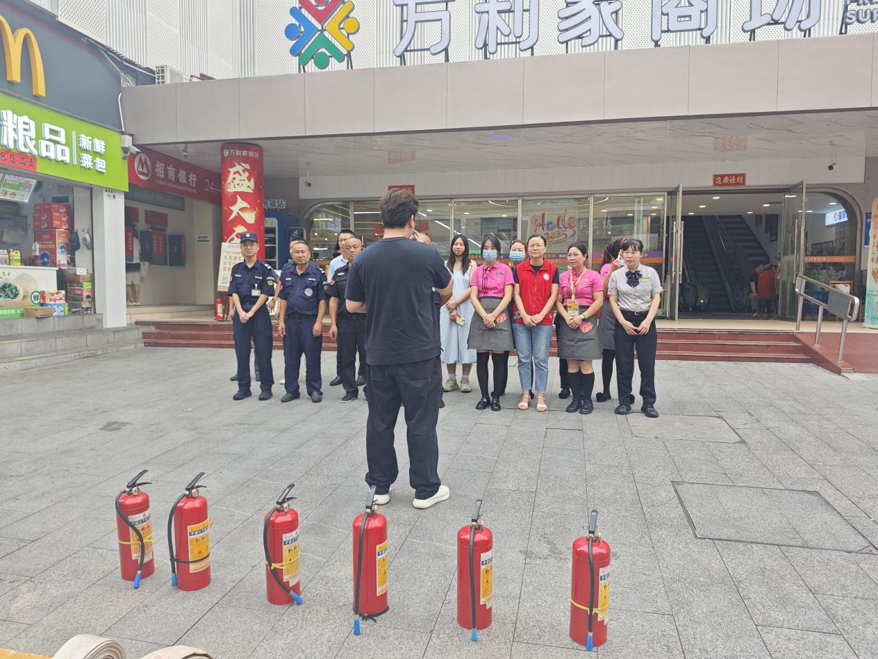 莲塘社区讯:2025年6月是全国第24个“安全生产月”,活动主题为“人人讲安全、个个会应急——查找身边安全隐患”。为增强辖区商户及居民的消防安全意识,提高应对突发火灾的自救互救能力,6月9日下午,莲塘社区联合聚宝商业中心物业管理处开展“2025年消防应急演练”实战演习,通过理论培训与实战操作相结合的方式,为社区安全注入“强心剂”。聚宝商业中心物业管理处员工、商户及社区工作人员等共20余人参与演习。