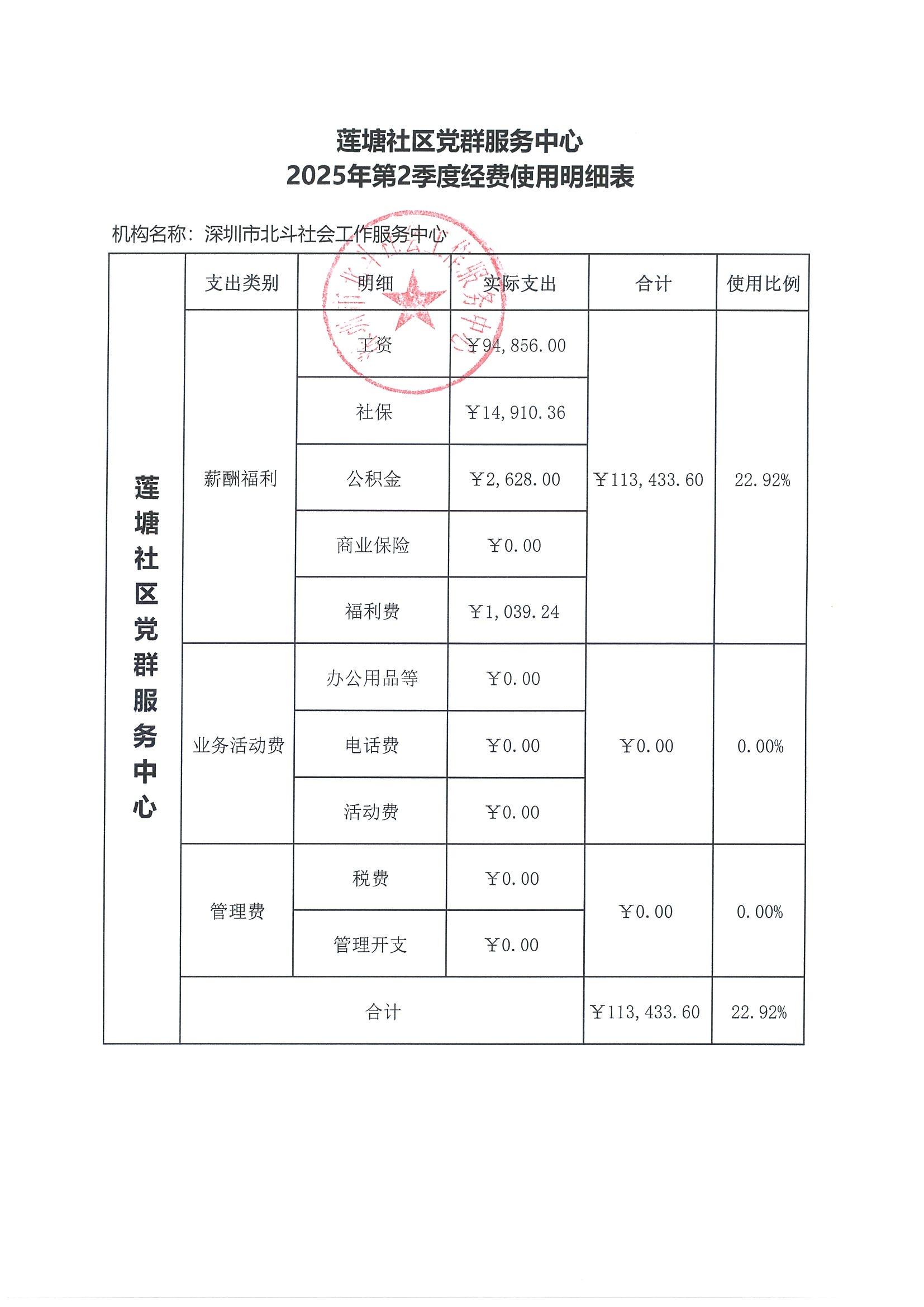 莲塘社区党群服务中心费用公示(2025年第2季度)