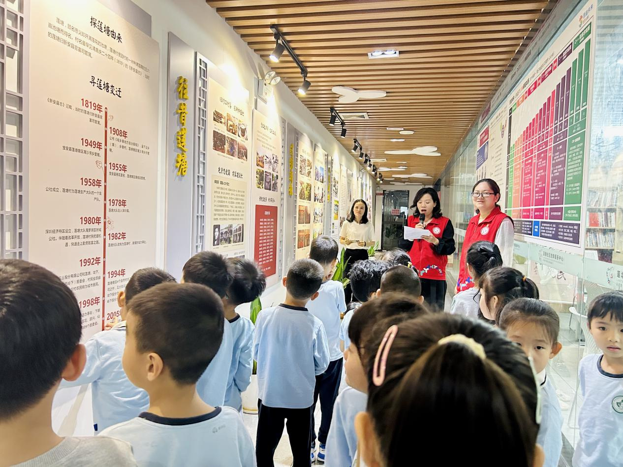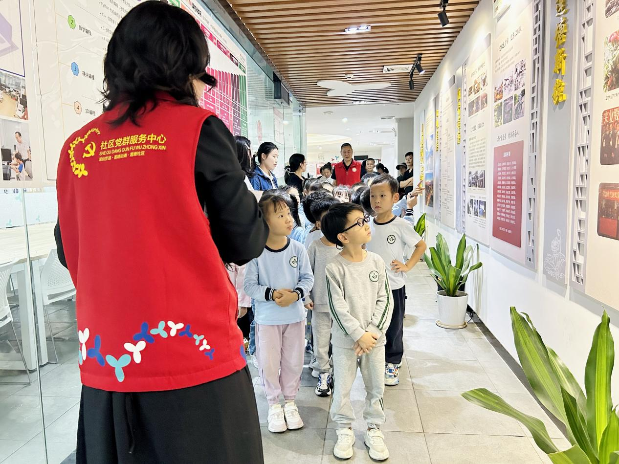 活动当天,社工首先带领孩子们开启社区探索之旅。孩子们走进社区党群服务中心,参观便民服务窗口、文化长廊、会议室、图书角等功能区域。社区工作人员通过趣味问答、角色扮演等形式,生动讲解社区日常工作,更讲述了莲塘社区名字的由来与岁月变迁。“哇!原来莲塘以前真的有个长满荷花的大池塘!”一声声惊叹中,孩子们用眼睛观察、用双手触摸、用心灵感受,用稚嫩真诚的视角,发现社区之美,并提出儿童视角的宝贵意见。