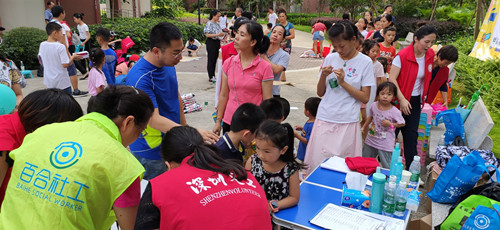 随着孩子一天天长大,每个家庭多多少少都会留下一些孩子们用过的二手物品,那些放在柜子里又占位置;过了年龄阶段的玩具、书籍,久置无用,架上蒙尘等等很多的闲置物品。在许多家庭中,购买之后闲置不用的物品数量也急剧上升,造成极大的资源浪费现象。为提高社区居民家中闲置物品的利用率;增加社区儿童青少年之间的交流机会;宣传“低碳环保”的生活方式和理念;2019年7月27日下午,在莲塘街道的大力支持下,由畔山社区党委、畔山社区工作站、畔山社区居委会主办,畔山社区党群服务中心、深圳市龙岗区百合社会事务服务中心承办的民生微实事项目之“小鬼当家”——畔山社区绿色公益集市第二场在莲馨家园又如期开展,本次活动也邀请到莲馨家园管理处协办。活动共招募了40组家庭的亲子前来摆摊,活动现场人数超200人以上。