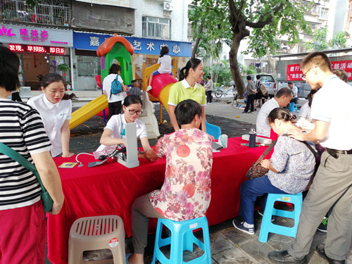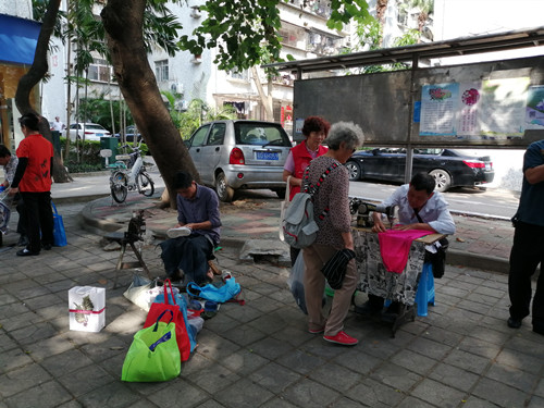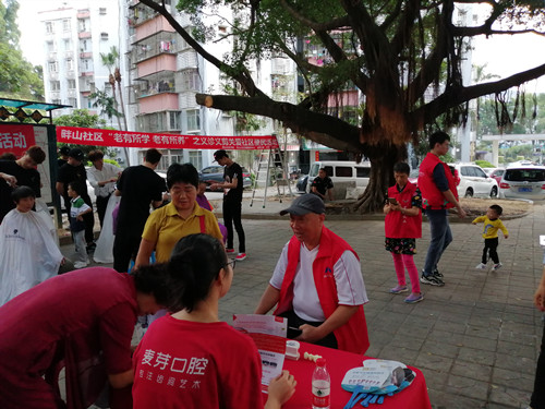 下午两点多,社工和义工们就来到活动现场布置起来。秋高气爽,居民们陆陆续续的到来了。深圳怡康妇产科的医生们给排队的居民们做身体检查和咨询健康服务,忙得不亦乐乎。麦芽口腔医生帮居民们给居民们检查口腔,并教居民们在日常生活中如何保护牙齿。海王星辰的药师们帮居民们用专业仪器按揉病痛的部位并提供慢性病咨询服务。理发区5位理发师聚精会神地给居民们理发,理完发的叔叔阿姨们都夸赞理发师剪的好,很满意。还有磨刀师傅和缝补师傅热情的帮居民们磨刀和缝补衣服,其中有位居民得了眼疾,几近失明,无法缝补衣服,她拿了很多衣服和裤子过来,师傅们很细心的帮她补好了,她非常开心。义工们和社工们一直在维持现场秩序,只要能帮到居民们,累点都开心。