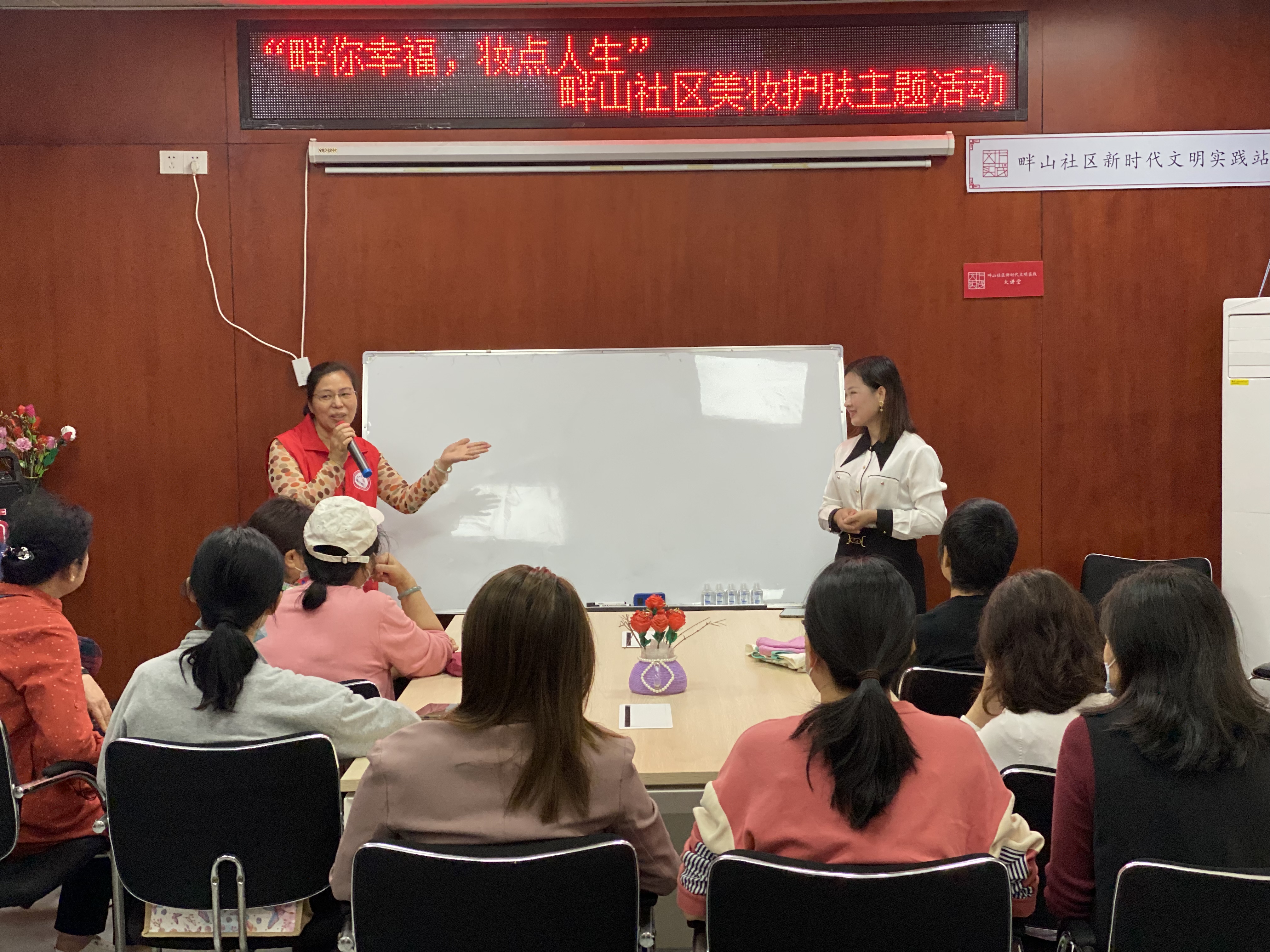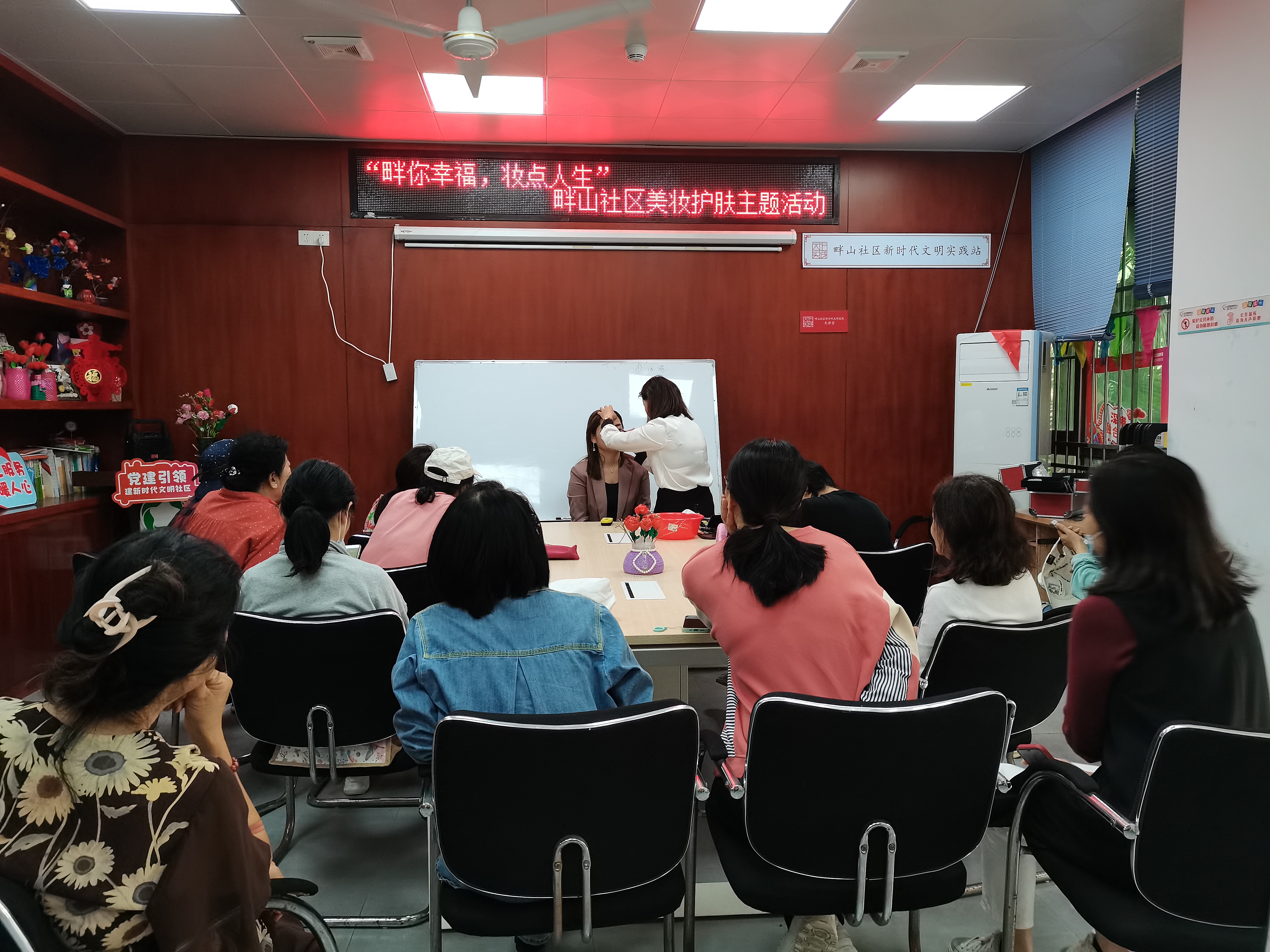 为拥有一个美丽的妆容、健康的皮肤,提升社区女性的幸福感。2023年4月13日上午,在畔山社区党群服务中心、社区新时代文明实践站、社区党委支持下,开展党群融合家之“畔你幸福,妆点人生”美妆护肤主题活动,共吸引辖区13位女性居民参加。