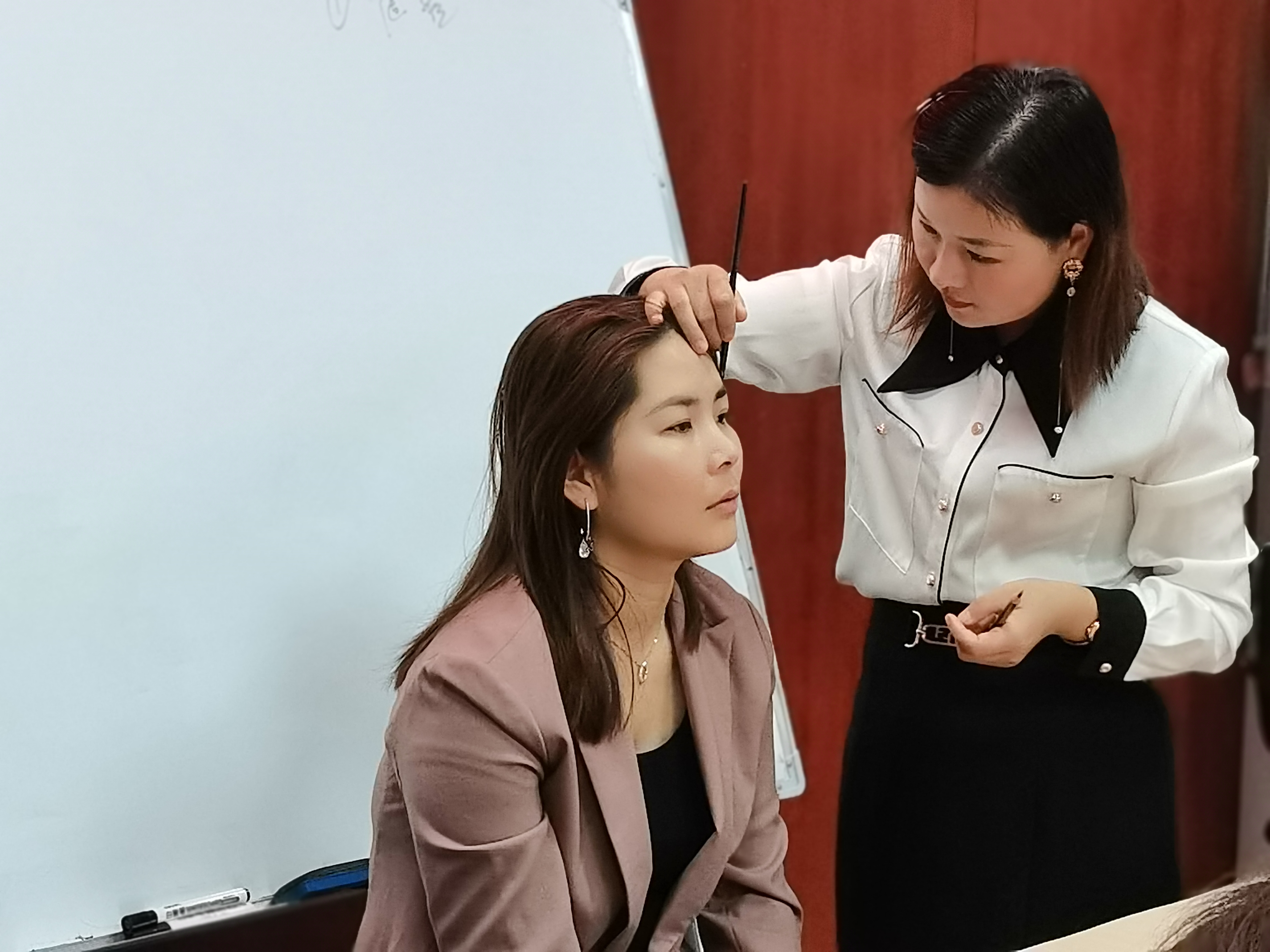 为了进一步加深印象,老师请了现场的居民做模特,为大家讲解日常美妆的步骤以及注意事项,怎样遮瑕、脸太大怎样变小,根据穿的衣服配口红颜色等等小技巧。不只于此,还演示如何提亮肤色与气质,前后的对比效果立竿见影,大家纷纷为老师的美妆技巧竖起大拇指。