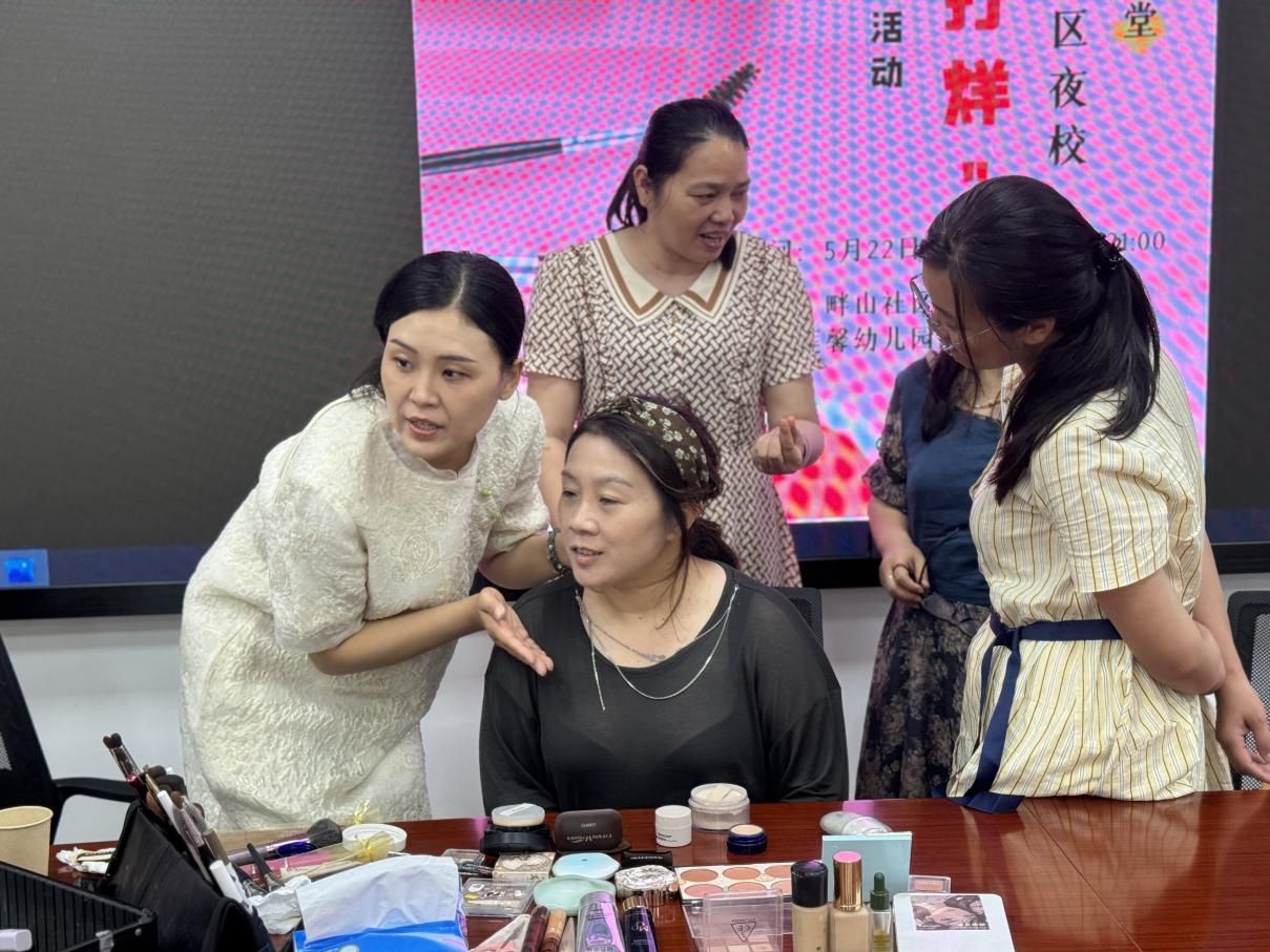近日,莲塘街道畔山社区党群服务中心会议室内灯火通明,多位居民齐聚社区夜校美妆课程现场。这场专业级的美容教学活动不仅系统传授现代仪容管理知识,更成为居民实现自我形象提升的契机,彰显着现代都市群体对生活美学的追求以及在季节更迭中完善个人形象的积极态度。