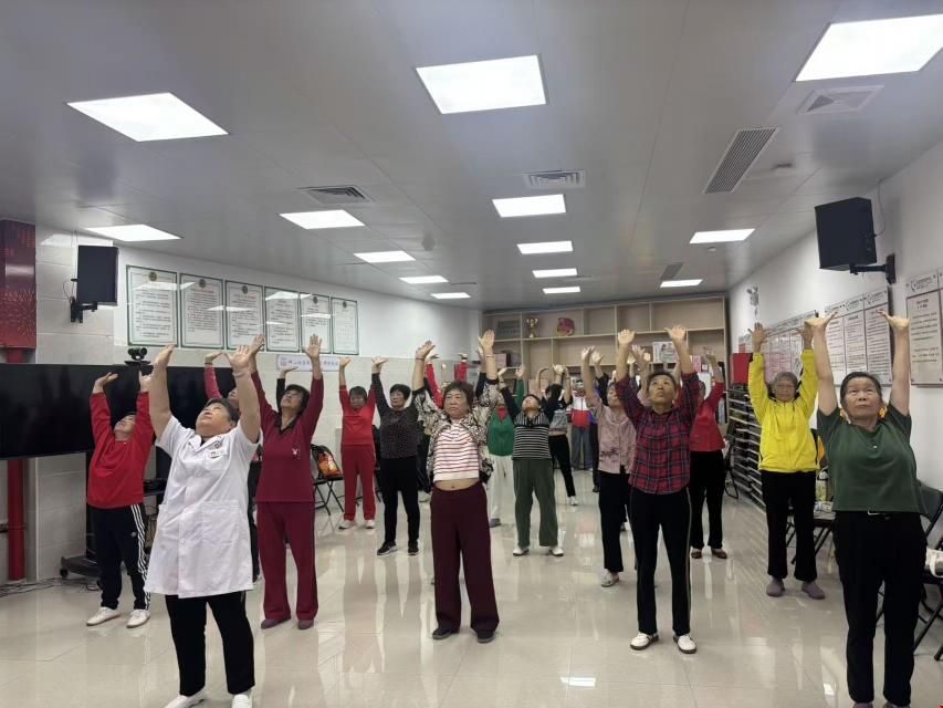 在互动环节,郭医师和社工带领居民一起学习肩颈腰腿保健操。通过简单易懂、便于学习的动作,帮助大家放松肩颈,缓解长时间低头或久坐所带来的不适。伴随着视频的音乐,大家认真地跟随示范练习,许多居民练习完感慨道:“这几个动作做完,脖子肩膀立马就轻松多了,而且简单方便,在家里、在小区都能随时做,真是太实用了!”。
