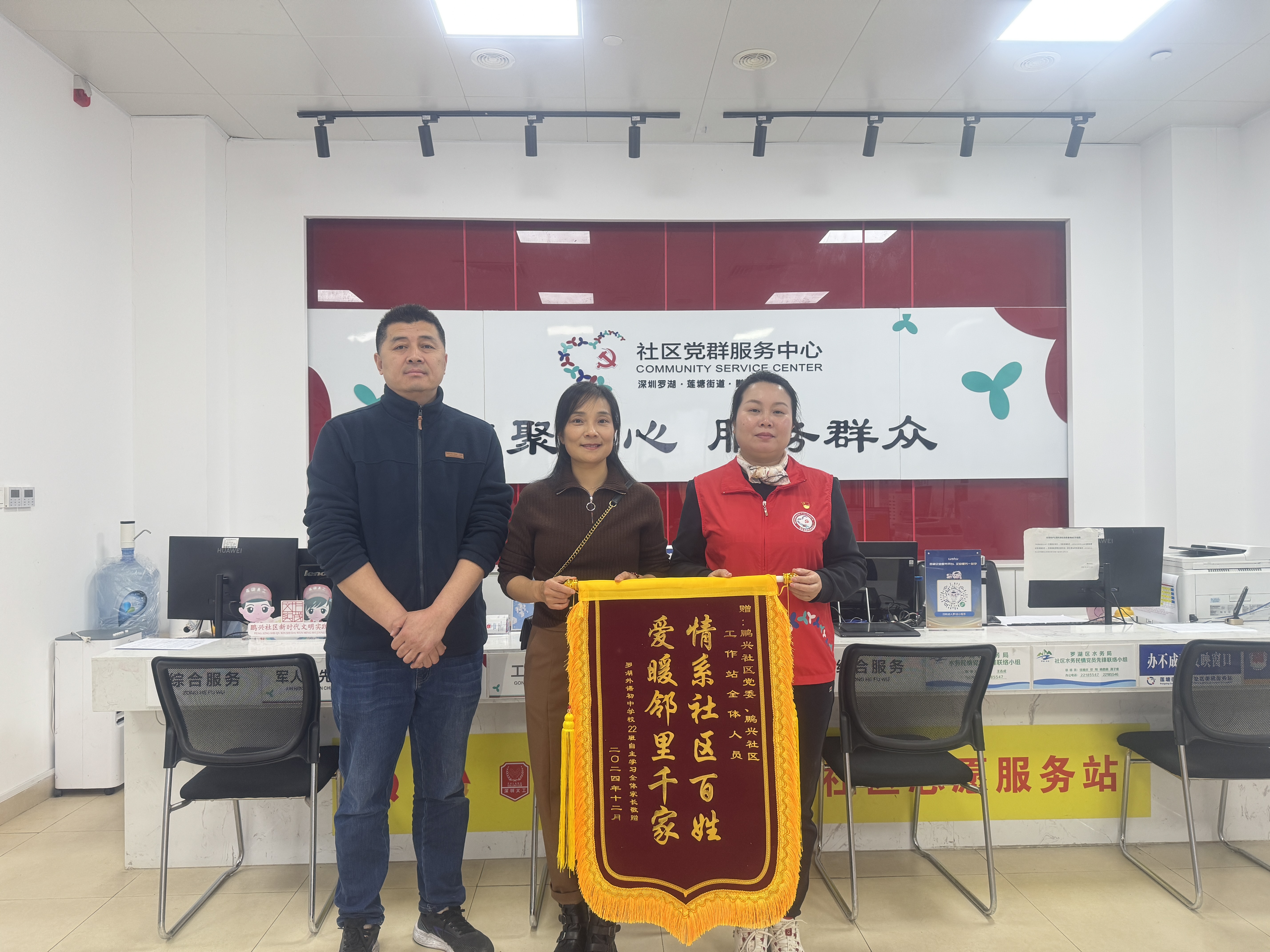 罗湖家园网讯:2024 年 12 月 17 日下午,鹏兴社区党群服务中心洋溢着温馨与感动。罗湖外语初中学校家委代表将一面锦旗郑重地送到了鹏兴社区党群服务中心团队手中,这面锦旗承载着学校和家长对社区党群服务中心深深的感激之情,感谢他们在学生晚自习方面给予的大力帮助和全方位支持。