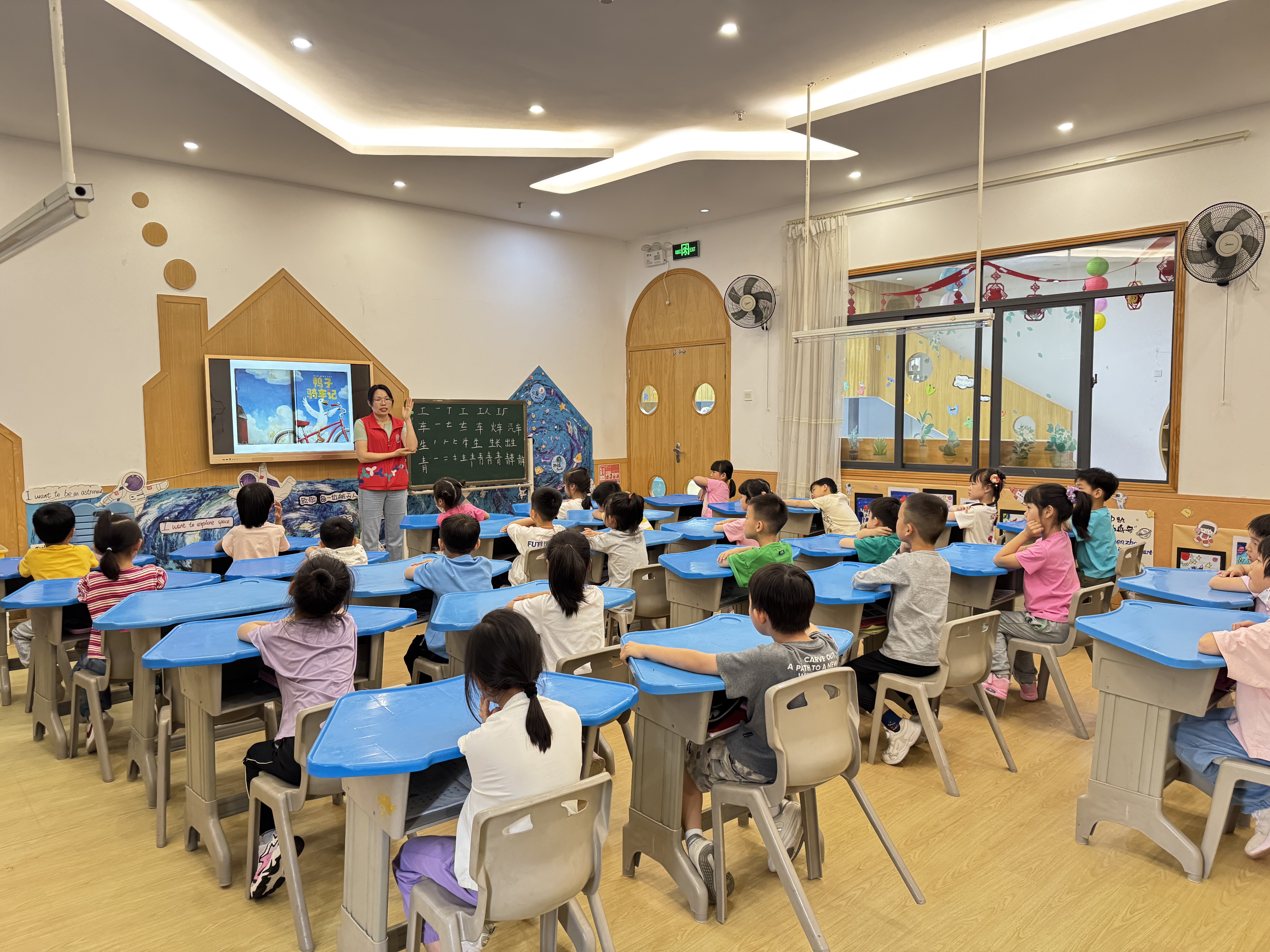 在绘本共读环节,刘社工化身“故事魔法师”,通过生动的拟声演绎与夸张的肢体语言,带领孩子们走进《鸭子骑车记》的奇妙世界中感受阅读乐趣,孩子们时而凝神倾听,时而举手互动,现场充满欢声笑语。随着《鸭子骑车记》的共读推进,刘社工不仅演绎小鸭子的冒险精神,更引导孩子发现故事中的“协作”智慧——当小鸭子邀请农场伙伴共同骑车,正如同我们建设美好家园,需要每个人热情参与。孩子们在角色扮演中领悟:“原来一个人骑车很有趣,但带着大家一起骑车会更棒!”