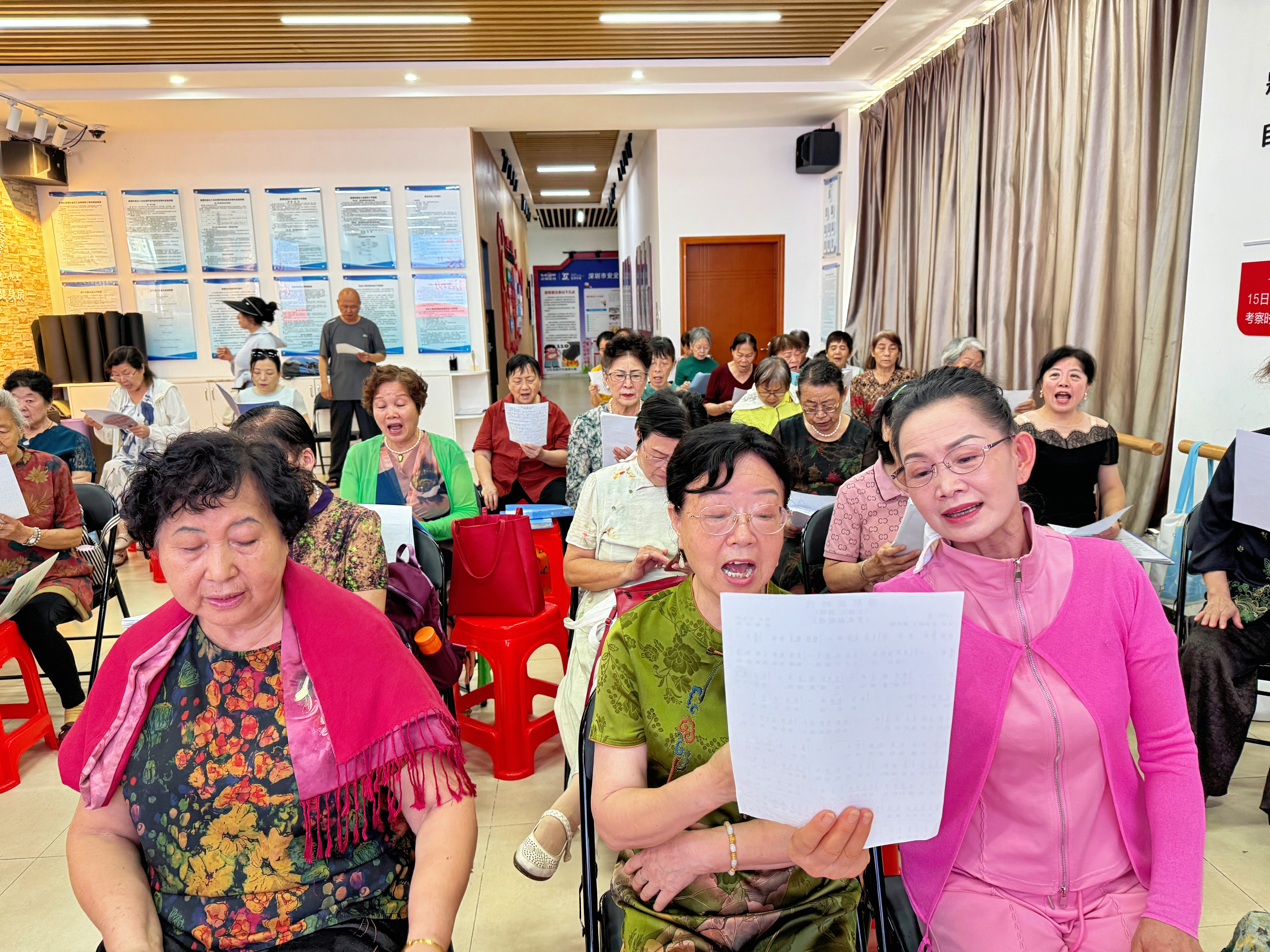 罗湖家园网讯:为弘扬党的光辉历程和伟大精神,丰富社区长者的精神文化生活,在党的生日来临之际,6月23日上午,在鹏兴社区党委的支持下,东西方驻鹏兴社区社工开展了“长者心向 红歌情长”迎七一合唱活动,此次活动吸引社区内众多长者齐聚一堂,用激昂的歌声表达对党的无限热爱与忠诚。