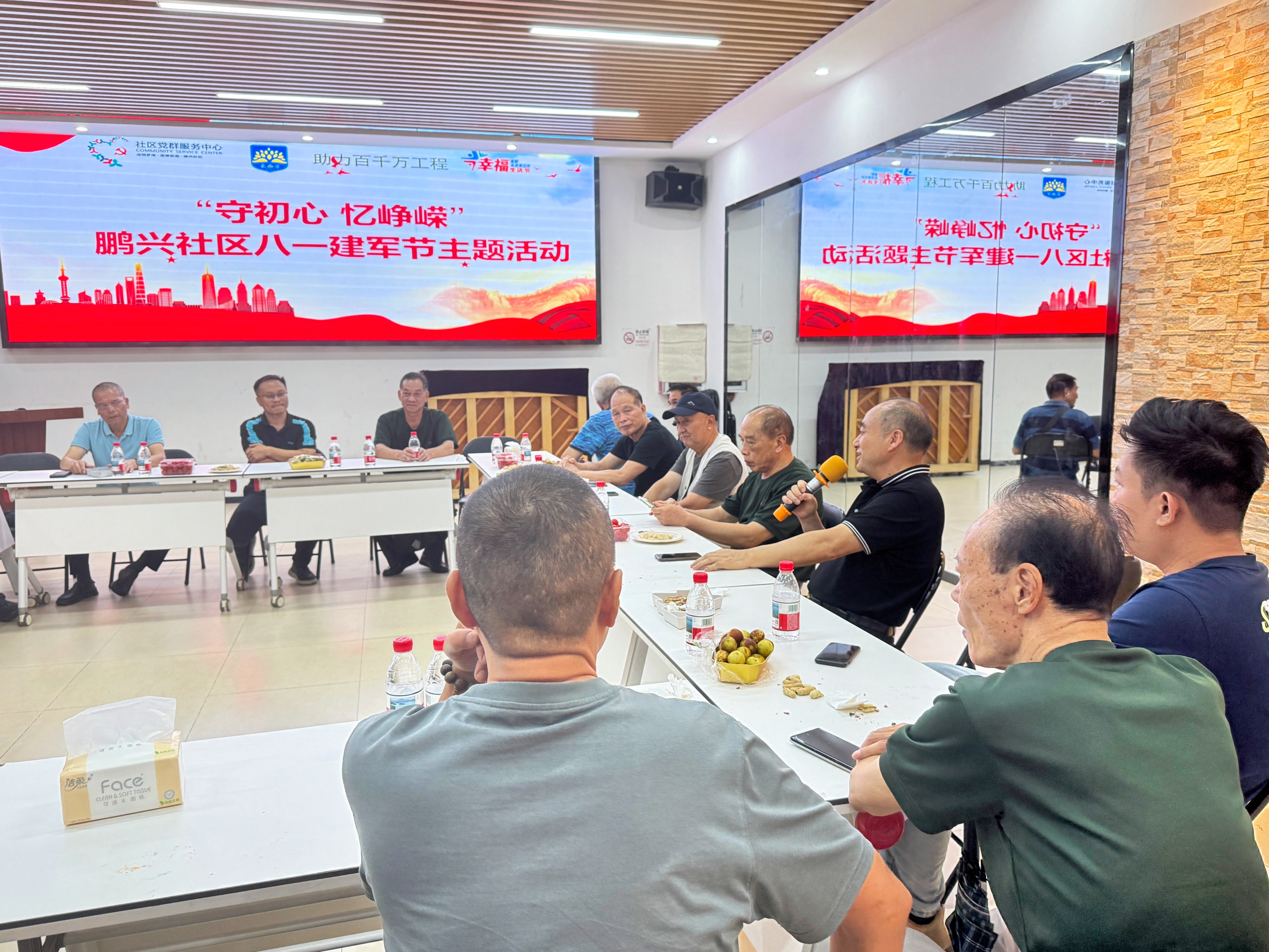 罗湖家园网讯:八一建军节来临之际,为传承和弘扬拥军优属的优良传统,增进退役军人之间的感情交流,7月22日下午,在鹏兴社区党委的支持下,东西方驻鹏兴社区社工联合莲塘街道退役军人服务站共同举办“守初心 忆峥嵘”八一建军节主题活动。20余位老兵齐聚一堂,通过红星志愿行动、军旅故事分享、红色才艺展演等形式,共同追忆峥嵘岁月,致敬最可爱的人。