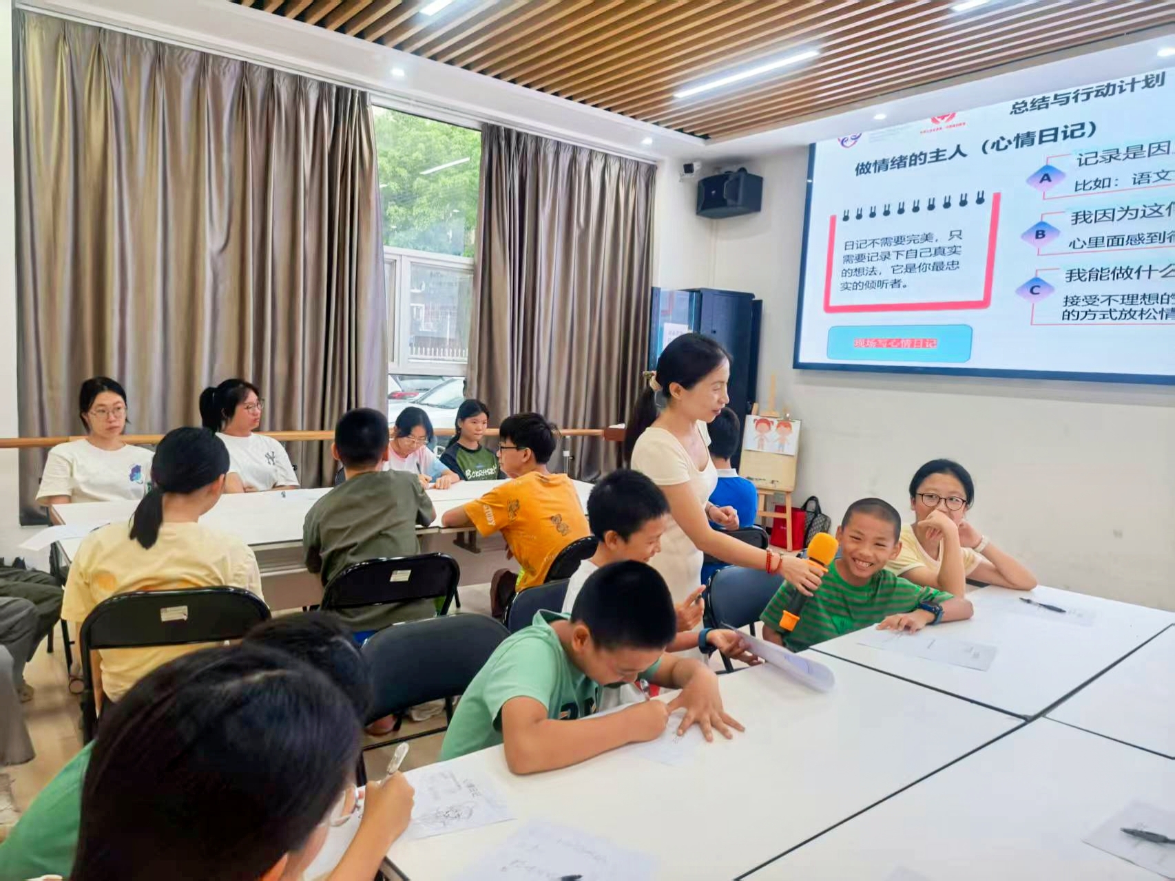 在情绪“情绪管理”环节,老师引导孩子们认识5种常见情绪,并通过情绪脸谱配对卡、安全角落设置、深呼吸步骤讲解等方式,教大家情绪管理的小知识。孩子们还在纸上写下近期发生的事件、事件引发的情绪,并用不同颜色标出情绪的强烈程度。10岁的小阳说:“同学冤枉我做了错事时,我心里特别难受,像憋着一团火。”老师借此案例,告诉孩子们各种情绪的出现都是正常的,并通过角色扮演,演示了用“说出感受”“深呼吸”等办法如何有效缓解负面情绪。陪同孩子参加活动的何女士感慨:“有时候孩子遇到矛盾爱冲动,其实就是不会处理情绪。这活动让我明白,教孩子认识情绪,能帮他们少出意外、少起冲突。”