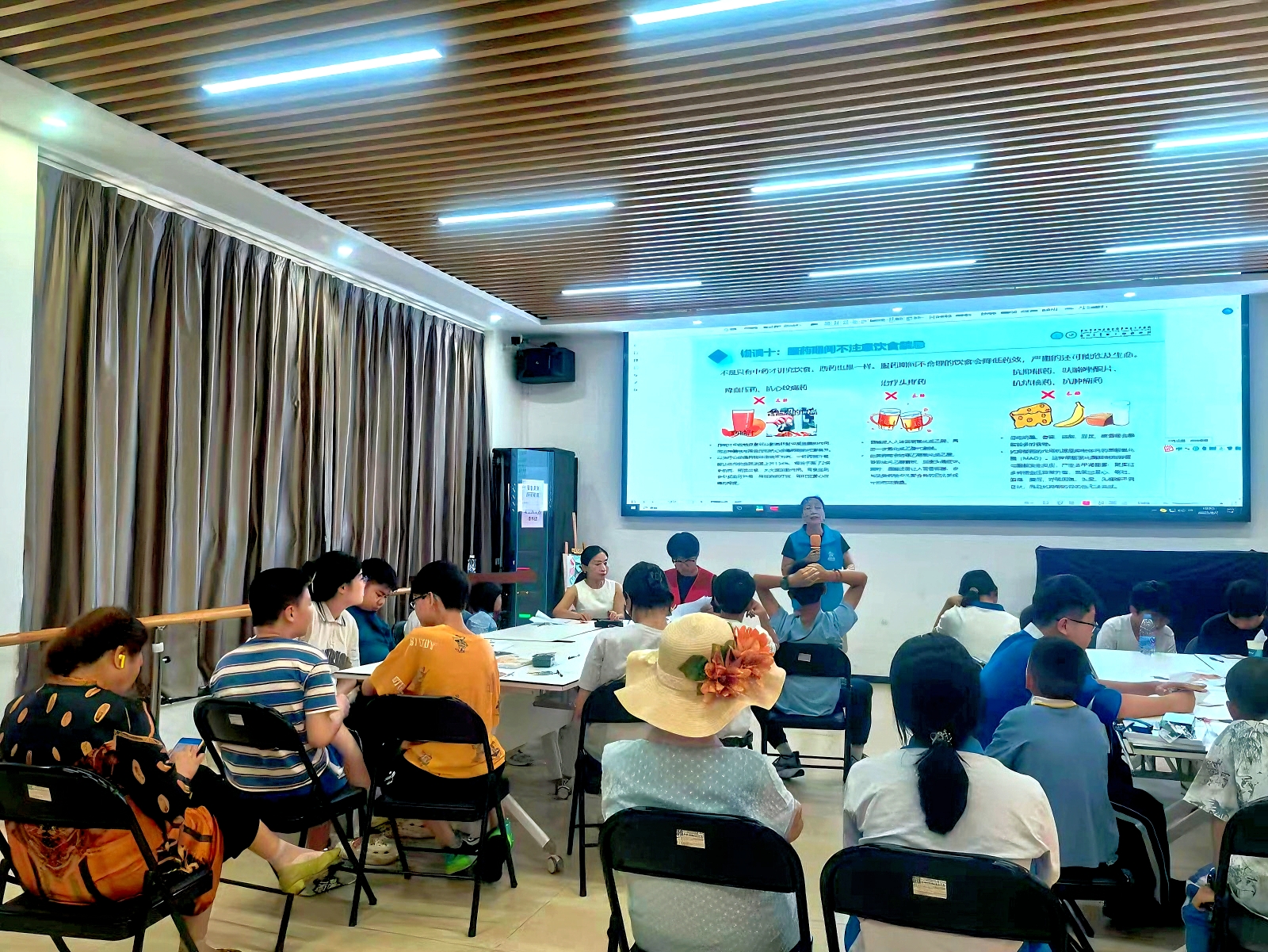 罗湖家园网讯:8月7日,驻点鹏兴社区东西方社工携手深圳市市场市监局开展“餐桌上的隐形陷阱”为主题的药品知识沙龙,活动邀请专业药师为居民详解常用药服药禁忌及食药搭配误区,让大家在轻松互动中掌握实用的用药安全知识。