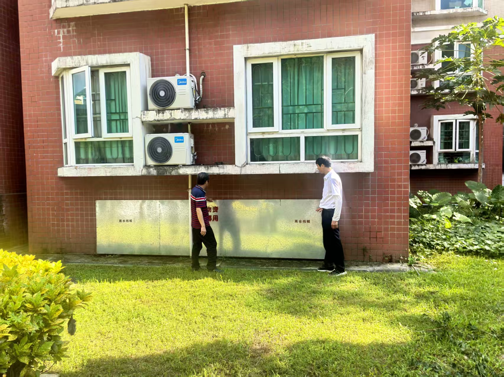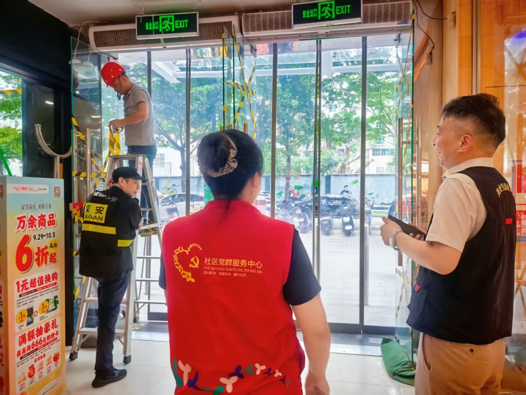 隐患排查到位,消除安全风险。社区组织网格员、社工及物业人员开展“拉网式”隐患排查。重点对辖区小区雨水挡板、防洪沙袋、边坡地带、低洼路段地带、地下车库、户外广告牌、老旧房屋门窗、建筑工地、树木等进行逐一检查,及时修剪枯枝、加固松动设施、清理排水沟渠。同时对沿街商户广告牌加固、门窗防护及应急准备开展巡查,督促停止户外作业,落实防风措施,并检查超市及物资供应点,确保食品、饮用水等生活物资充足。
