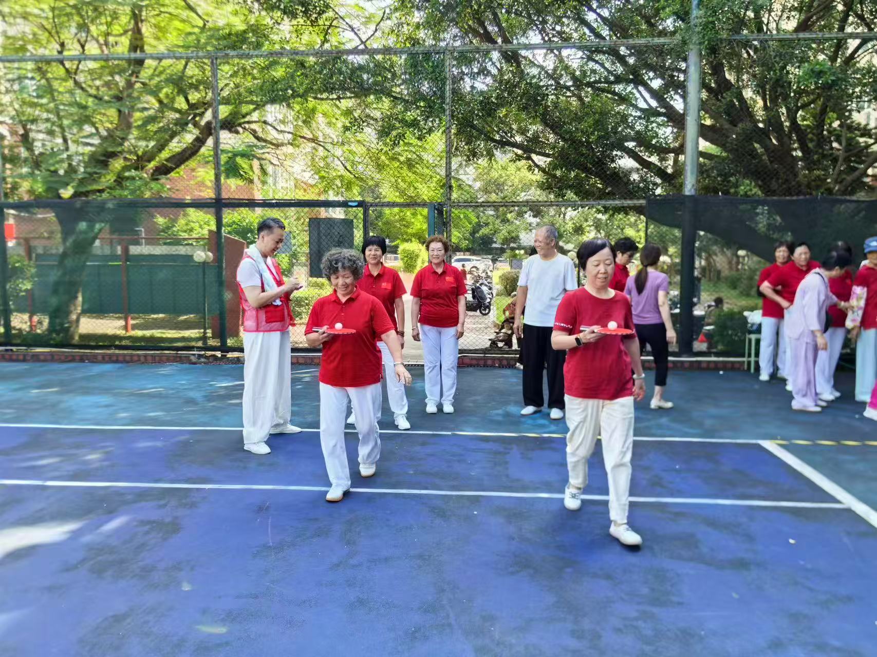 活动伊始,社工为活动现场的长者们详细讲解了各个项目的游戏规则以及活动过程中的安全注意事项。 随后,鹏兴社区柔力球队带来了一场精彩绝伦的表演,队员们身着红色鲜艳的服装,手持柔力球拍,动作轻盈流畅,如行云流水般自然,精彩的表演赢得了现场长者们的阵阵掌声和喝彩声,也为即将开始的趣味运动会营造了热烈的氛围,激发了大家参与运动的热情。