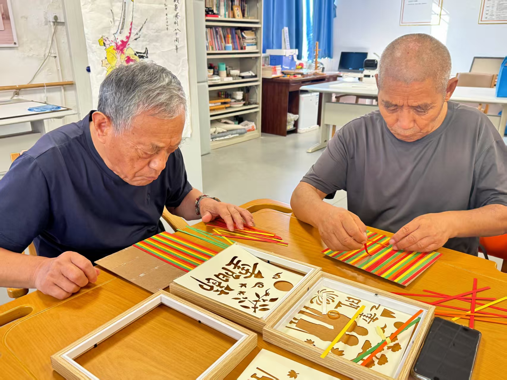 活动尾声,长者们手捧作品合影留念,每幅作品都各有特色,李叔高兴地展示自己的作品说:"这样的活动让我们走出家门,和老伙伴们一起动手动脑,比在家看电视有意思多了!"
