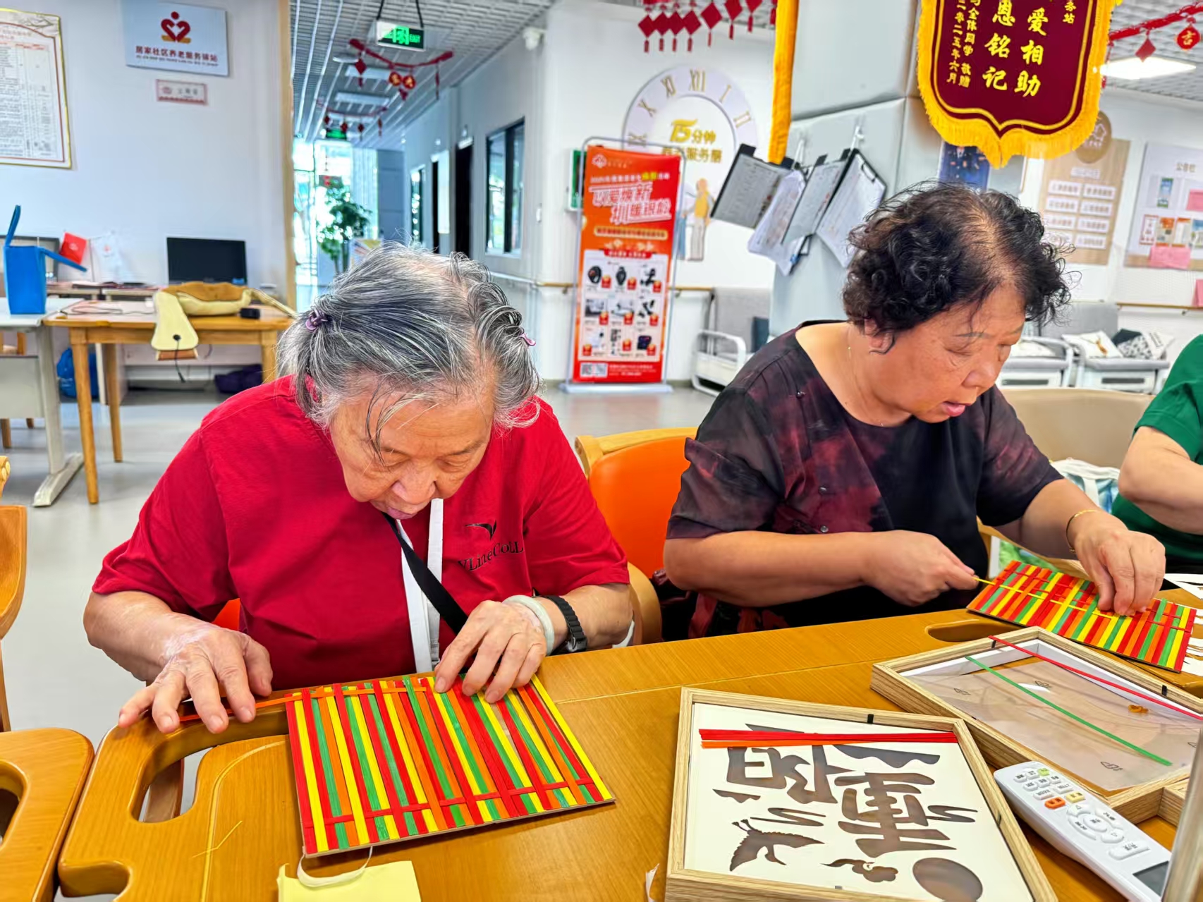 罗湖家园网讯:为弘扬中华民族尊老敬老的传统美德,丰富社区长者的精神文化生活,在重阳节即将到来的之际,在鹏兴党委的支持下,2025年10月16日下午,东西方驻鹏兴社区社工组织开展"竹趣乐编 欢乐重阳"长者竹编画DIY活动,20位社区长者欢聚一堂,以竹为媒,编织重阳温情。